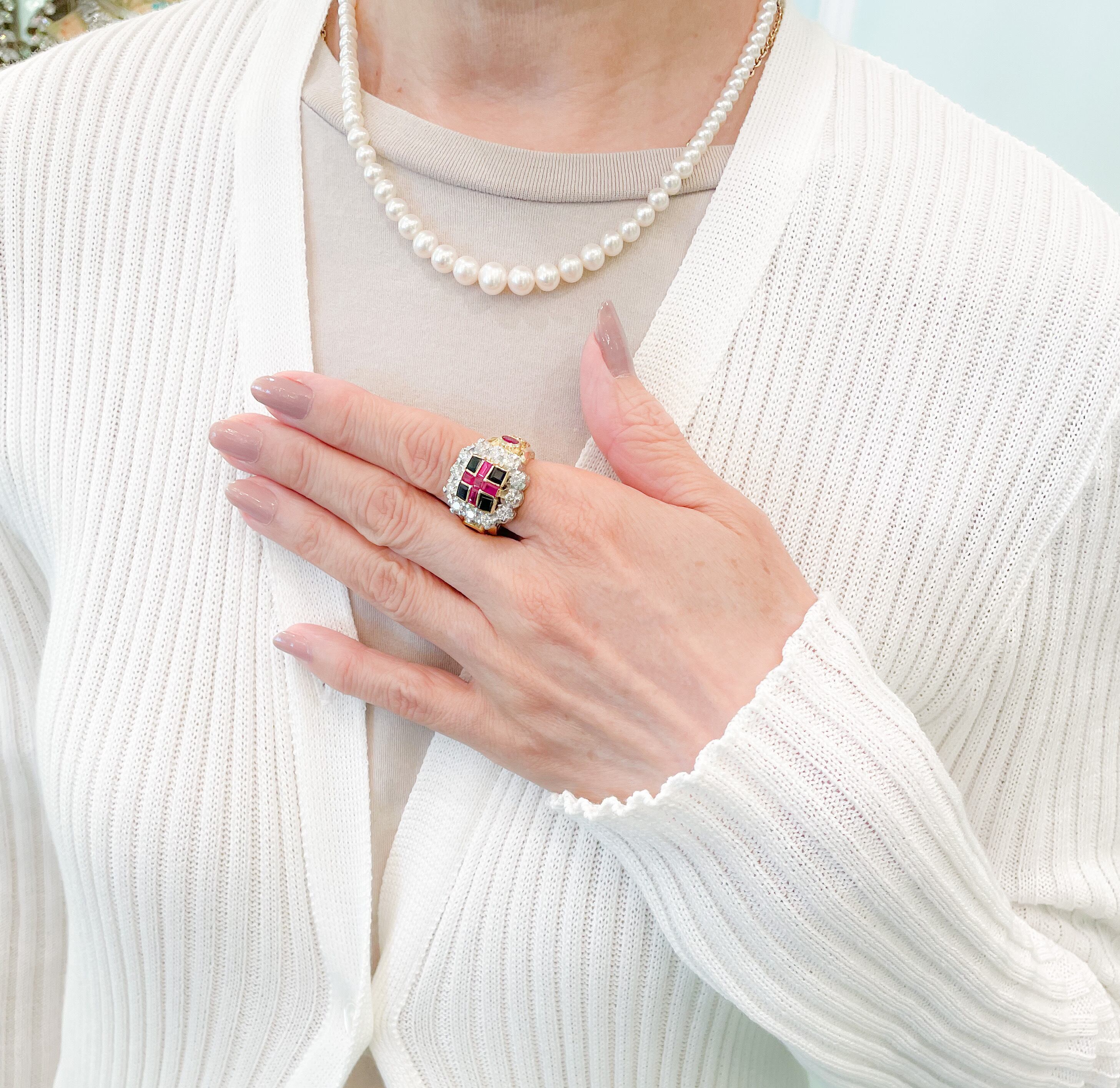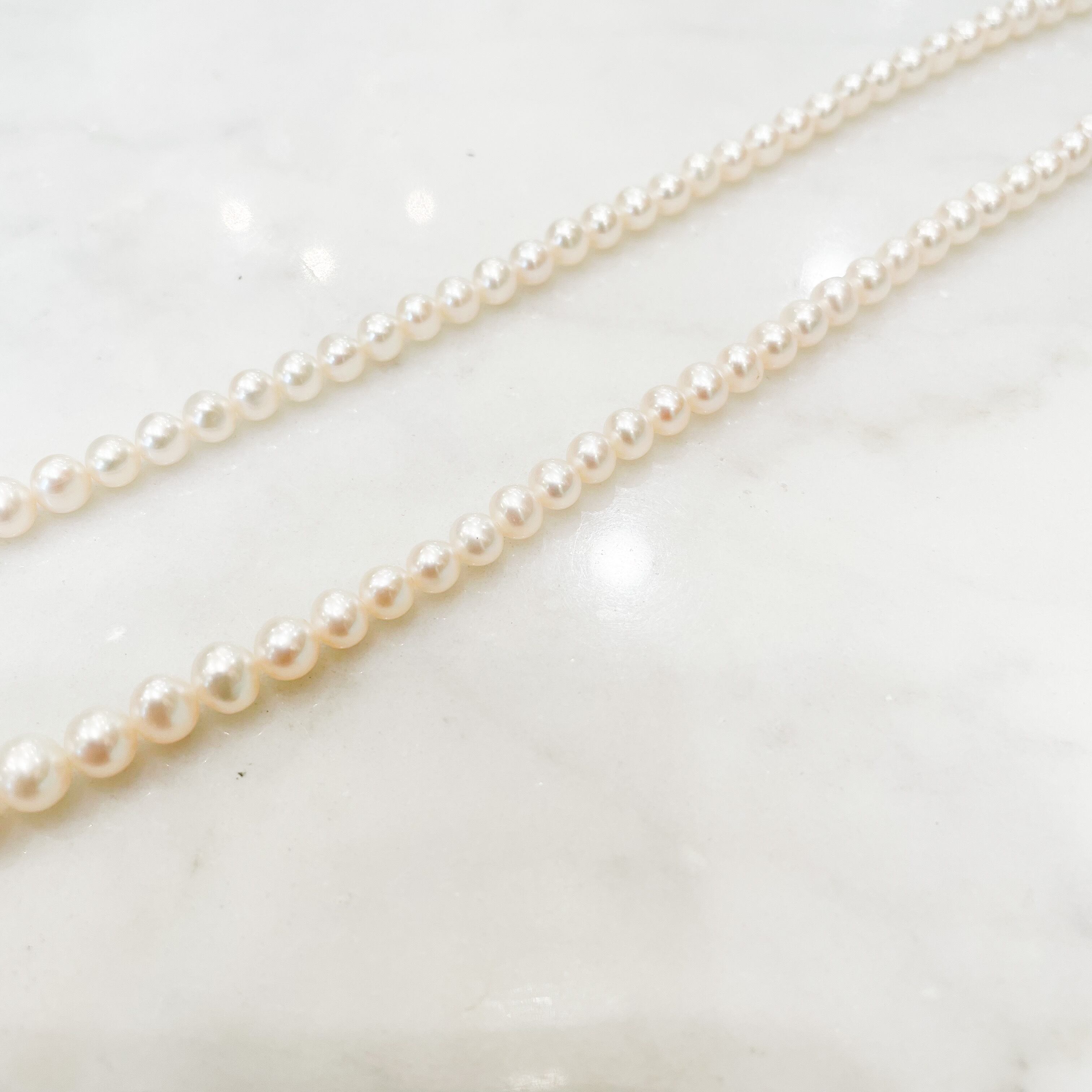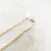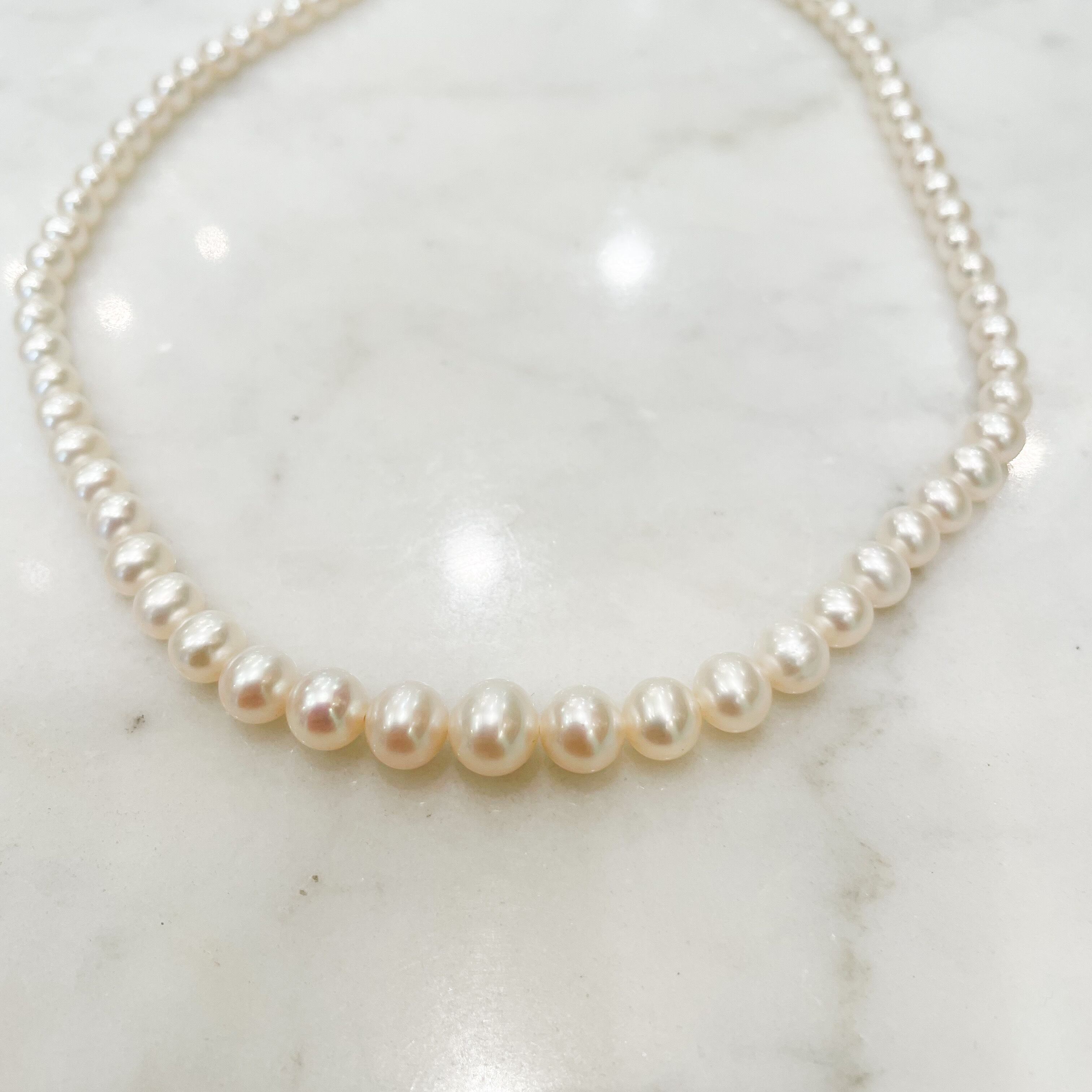 白い真珠のグラデーションネックレスはとてもエレガント。