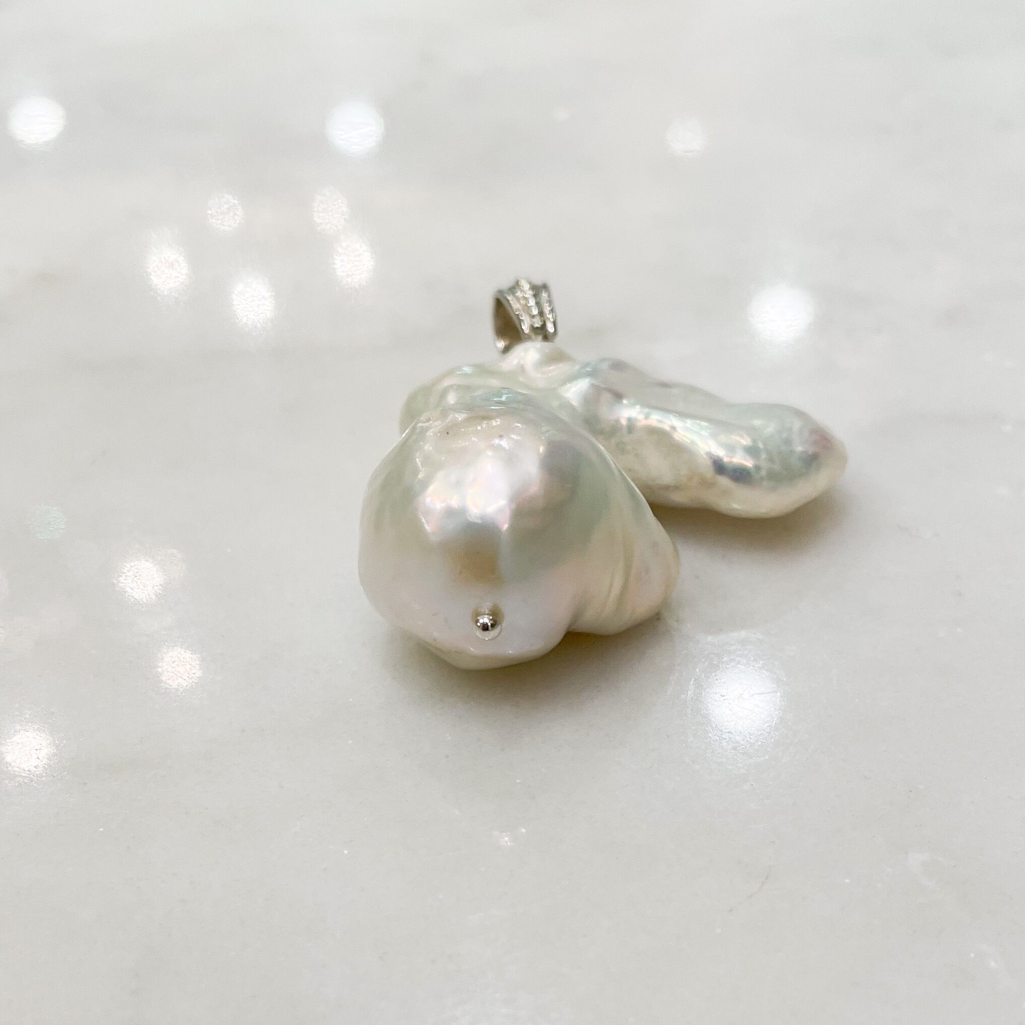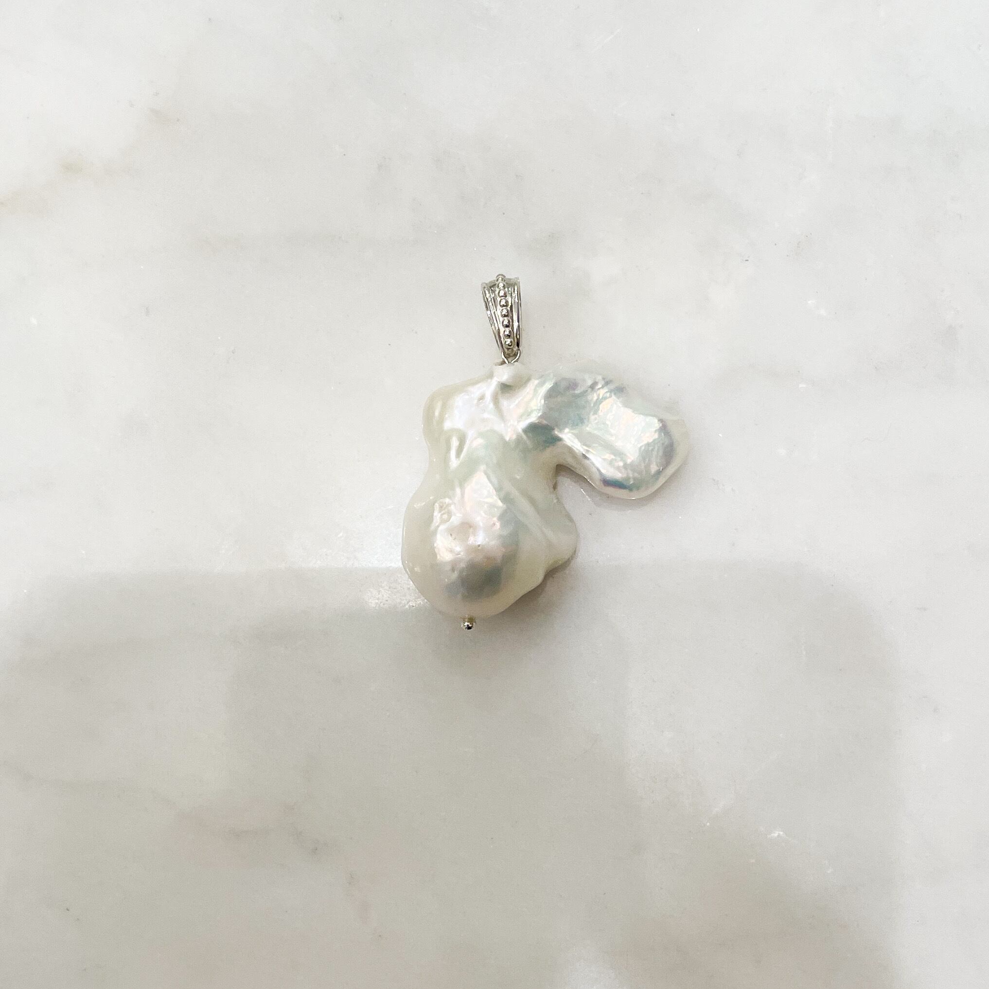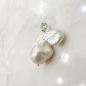 このバロックパールのペンダントには大きめのシルバー金具が付いています。