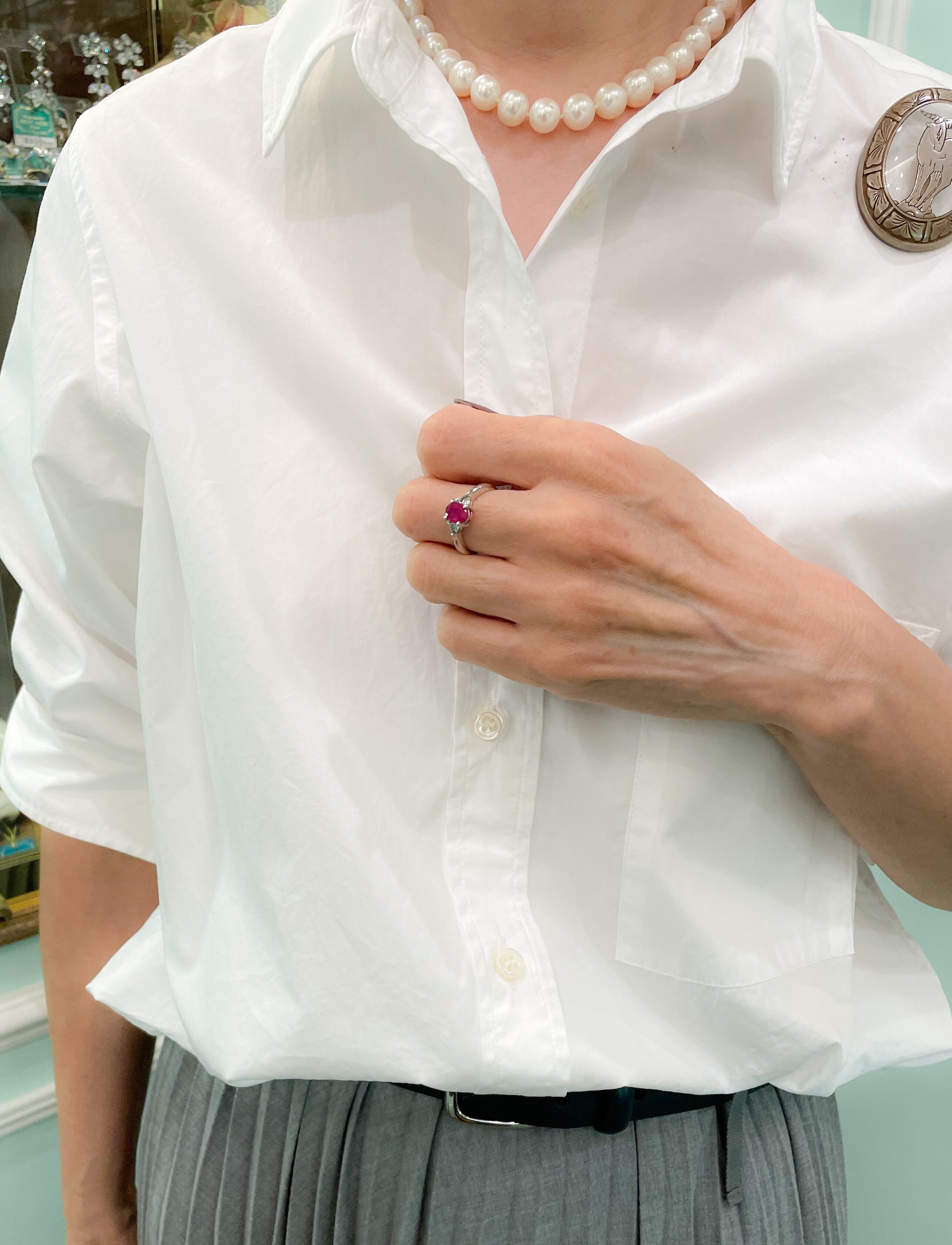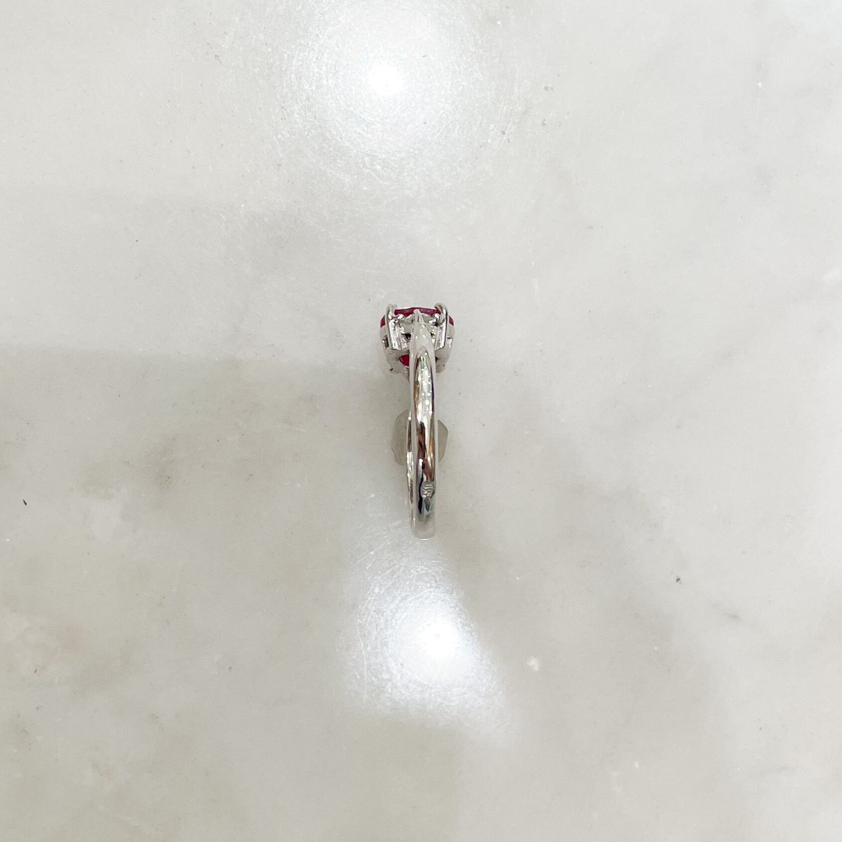 プラチナや金の台に入れるようなものすごく綺麗なルビーではないのですの、小さいながらもルビーの赤はパッと目を惹きます。