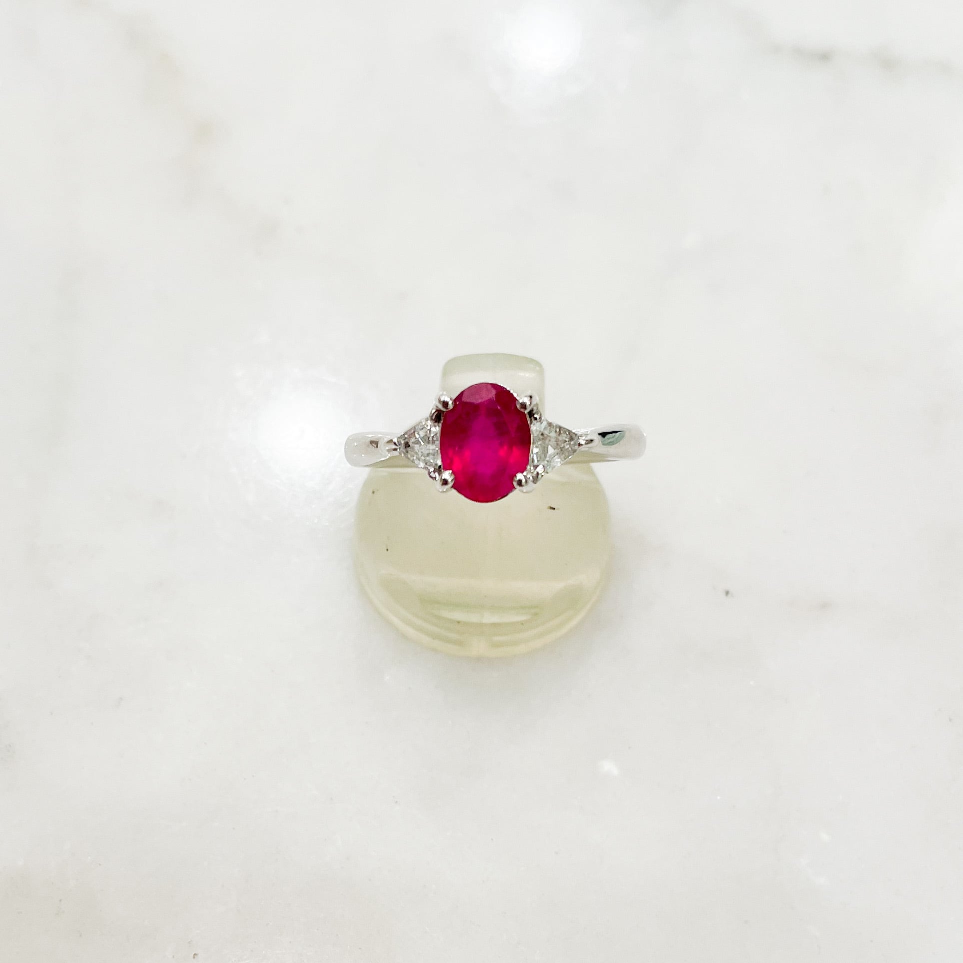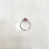オーバルのルビー(1.44ct)と三角ホワイトサファイアのシルバー台リング