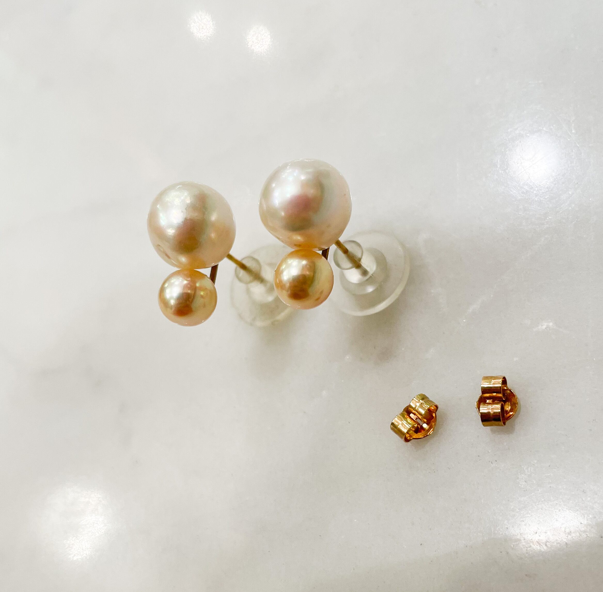 大きさと色が異なるものを組み合わせることで、グッとお洒落な真珠のピアスに仕上がっています。