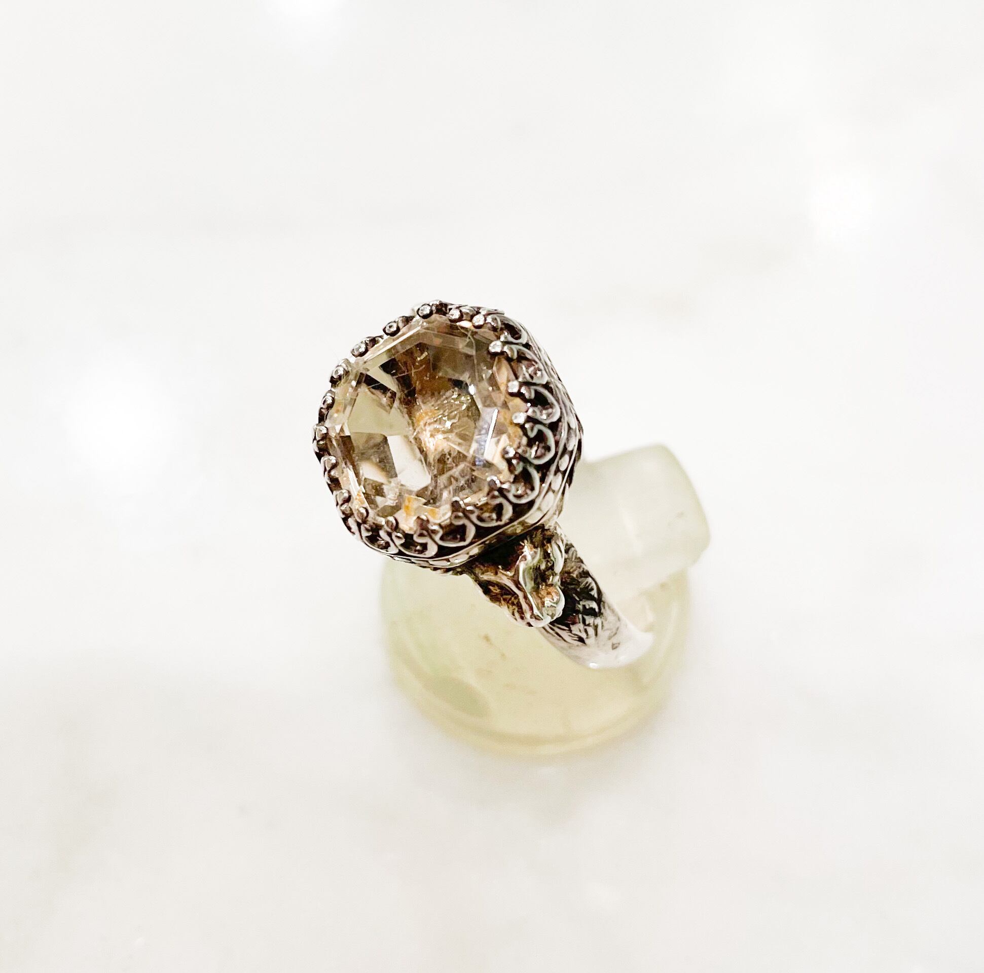八角形のスモーキークォーツにはカットが施されていて、キラッと輝きます。