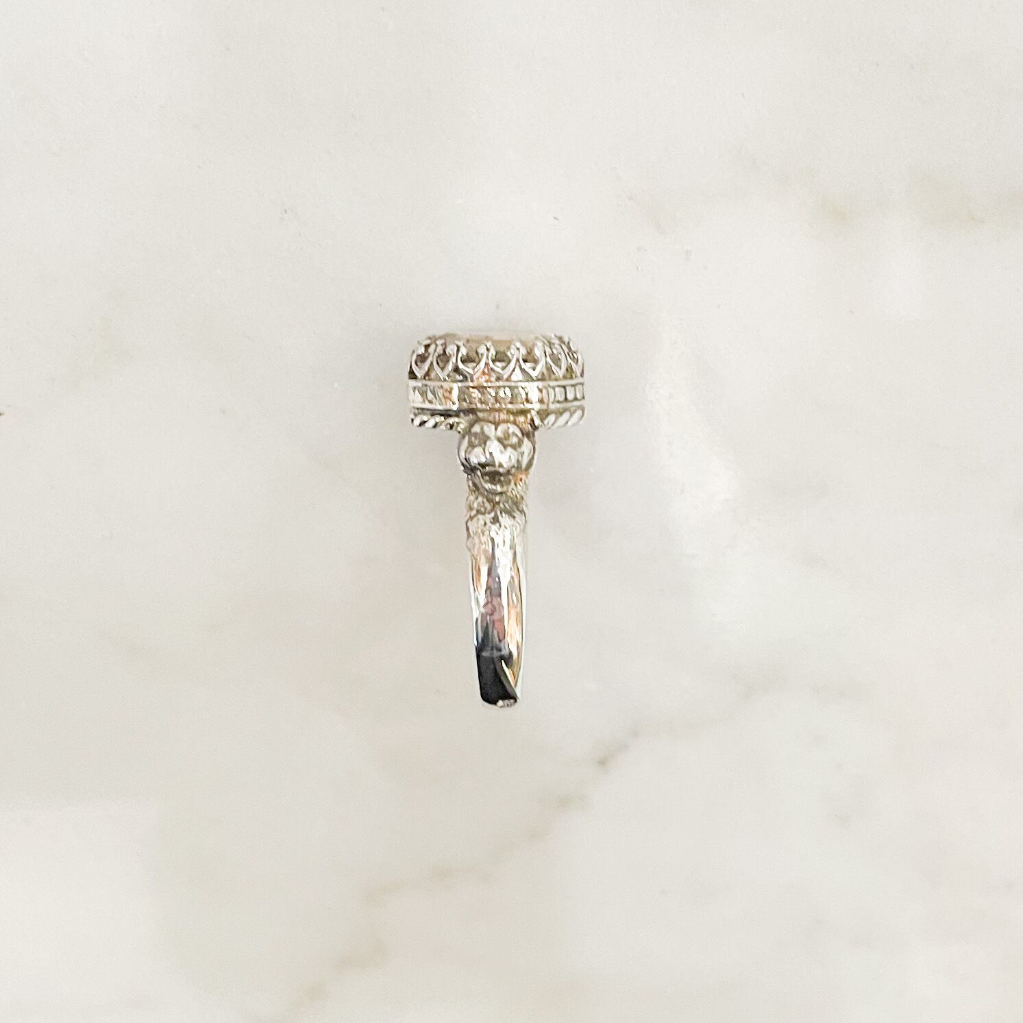 ライオンのリングのトップには、文字が彫ってあるため、石を通してさりげなくその文字が読めるように、色は薄いものを使いました!