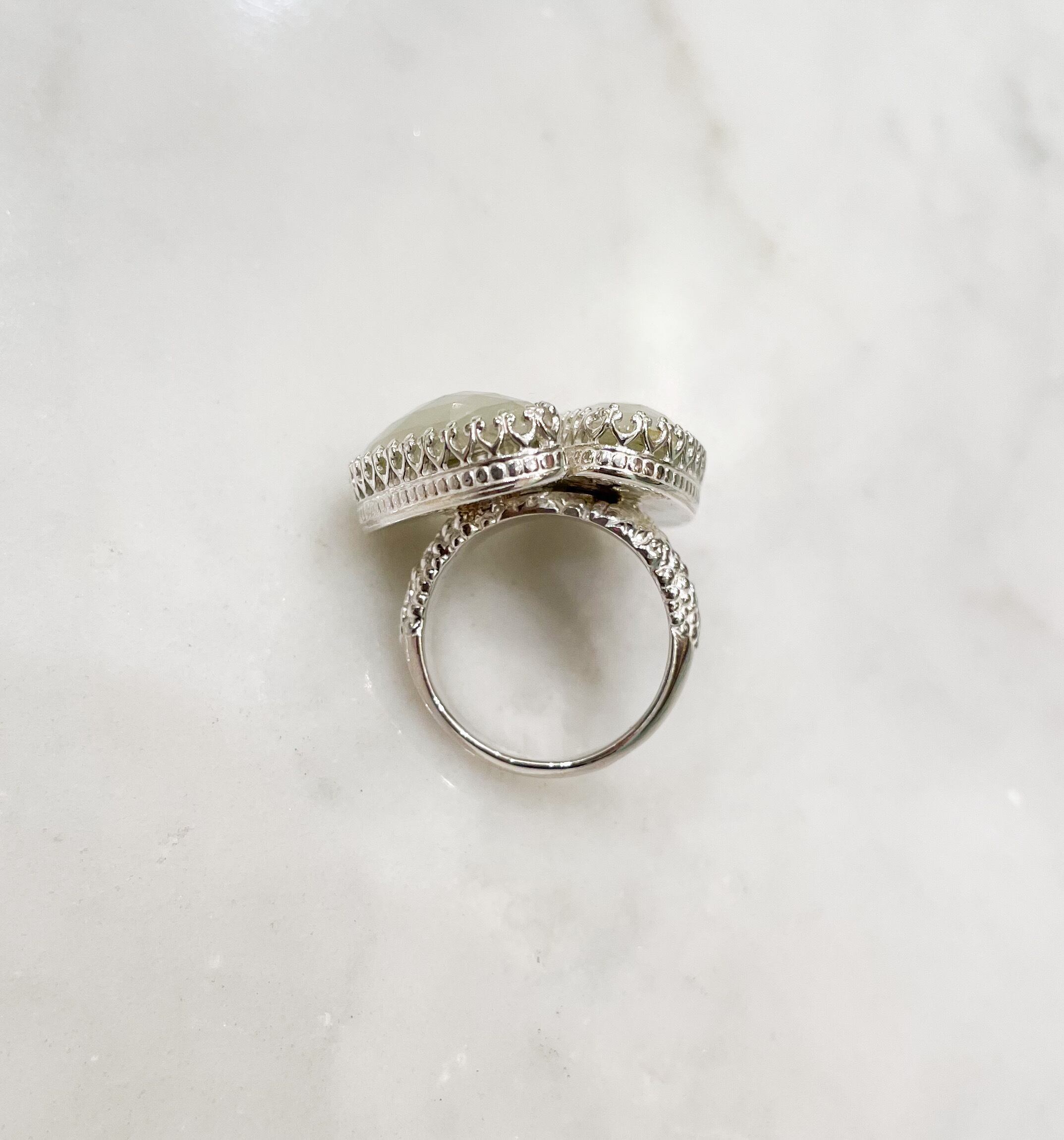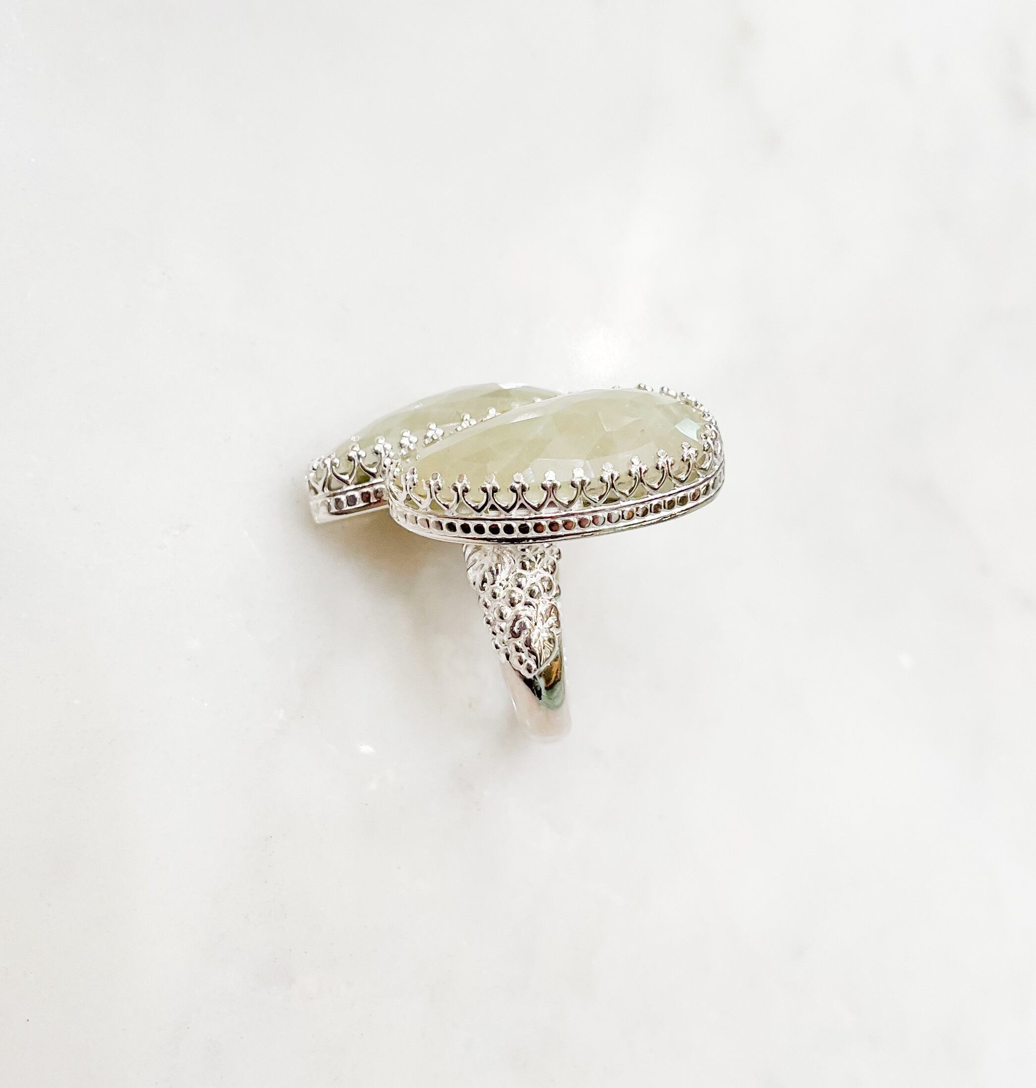シルバーで王冠留めされた白系サファイア(26.17ct)のシルバーリング