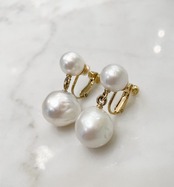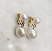 大きな白の真珠のイヤリングは品があるのにすごく華やか。