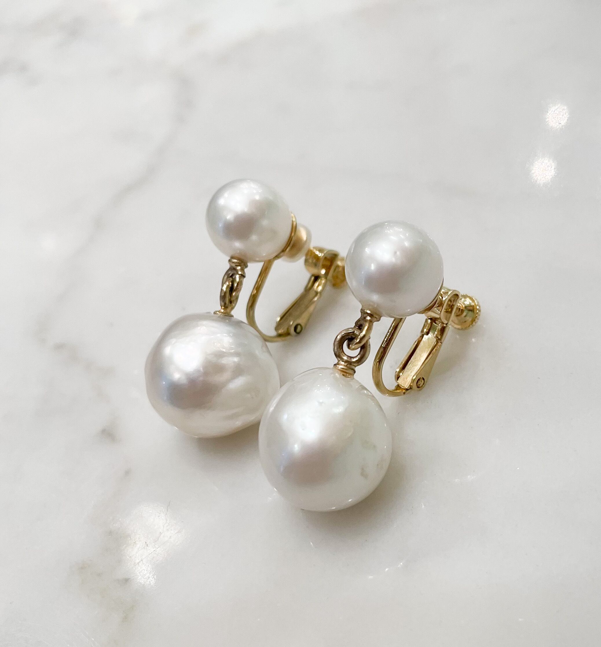 大粒南洋真珠の揺れるイヤリング