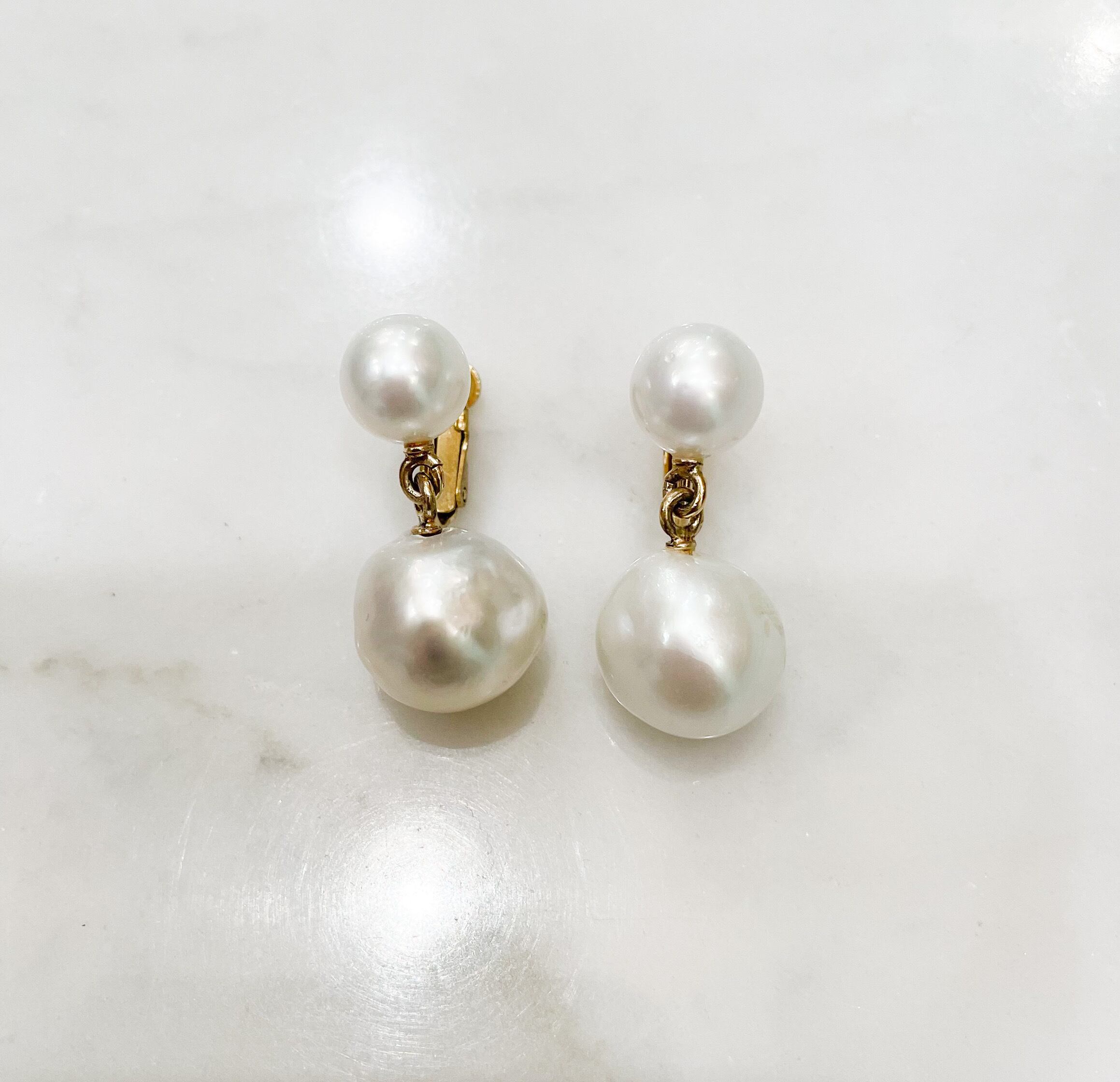 大きめの南洋真珠を四つ使ったイヤリングです。
