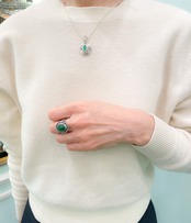 波紋のようなデザインのシルバーのセンターにツルッとしたなめらかな曲線のエメラルドをセットしました。