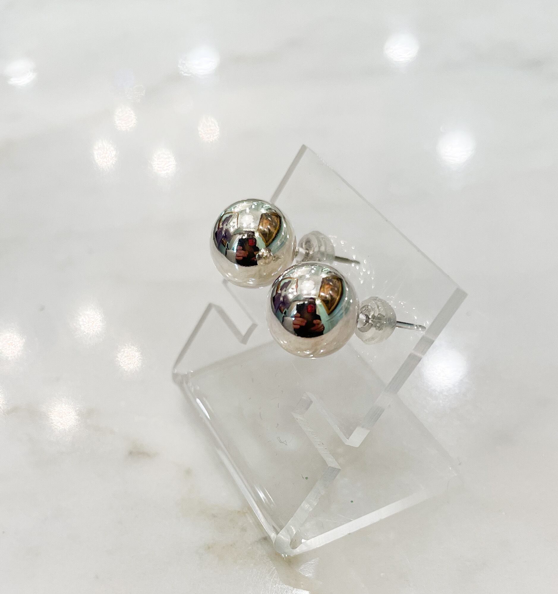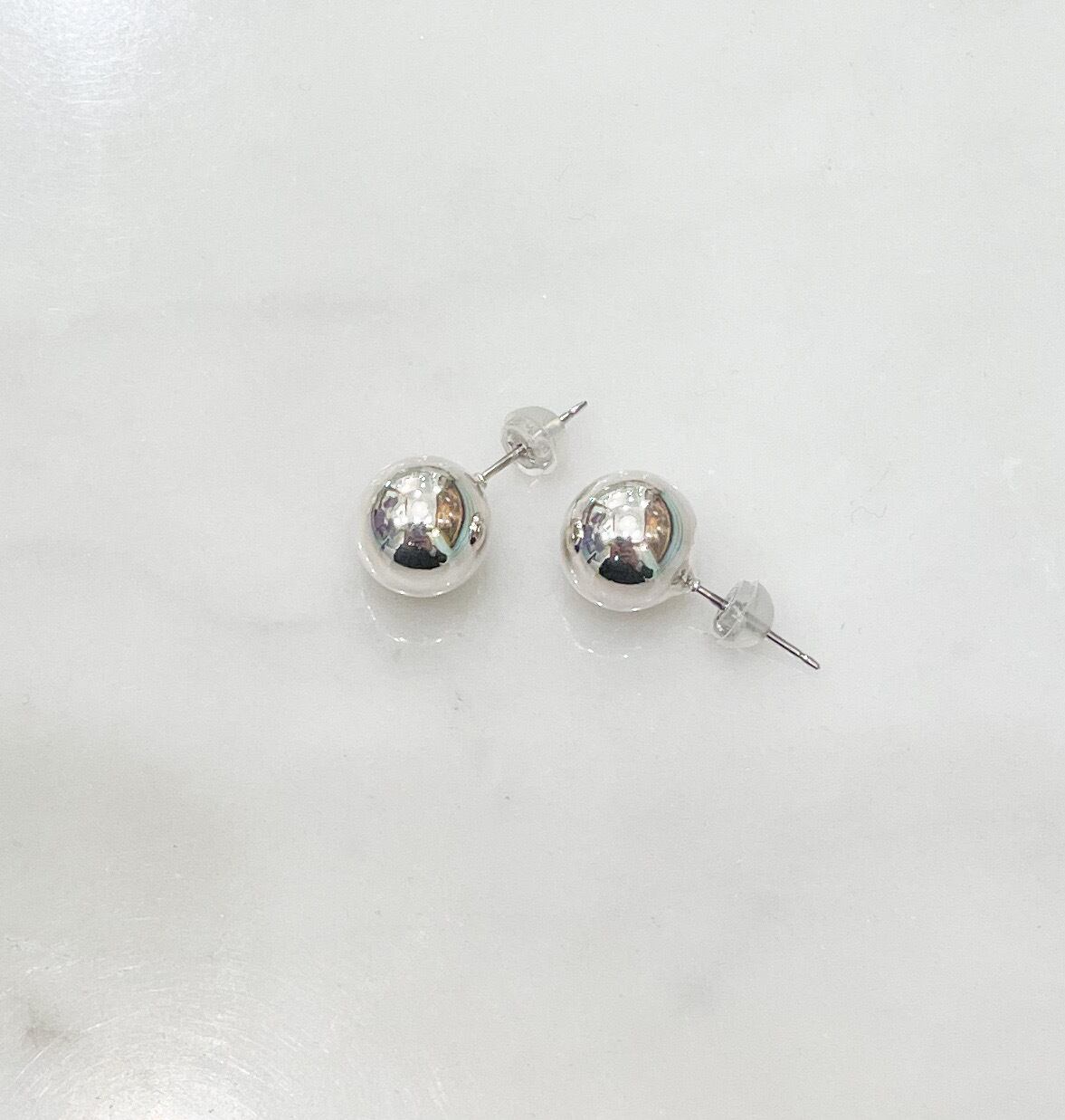 シンプルにシルバーで作ったまん丸な形のピアスです。