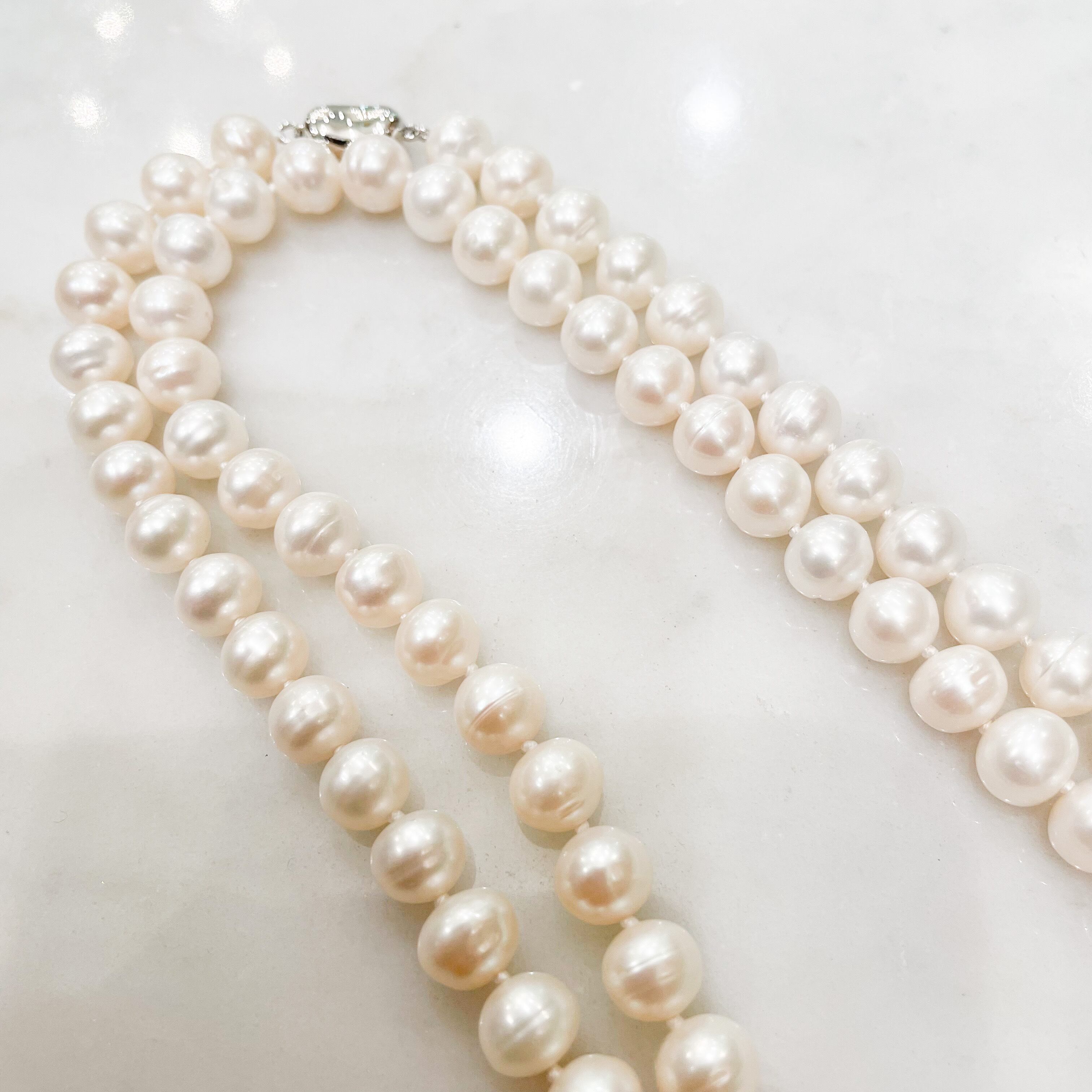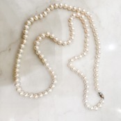 一年を通して使えるカジュアルな白い真珠のネックレス。