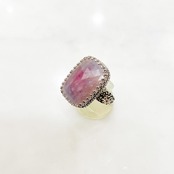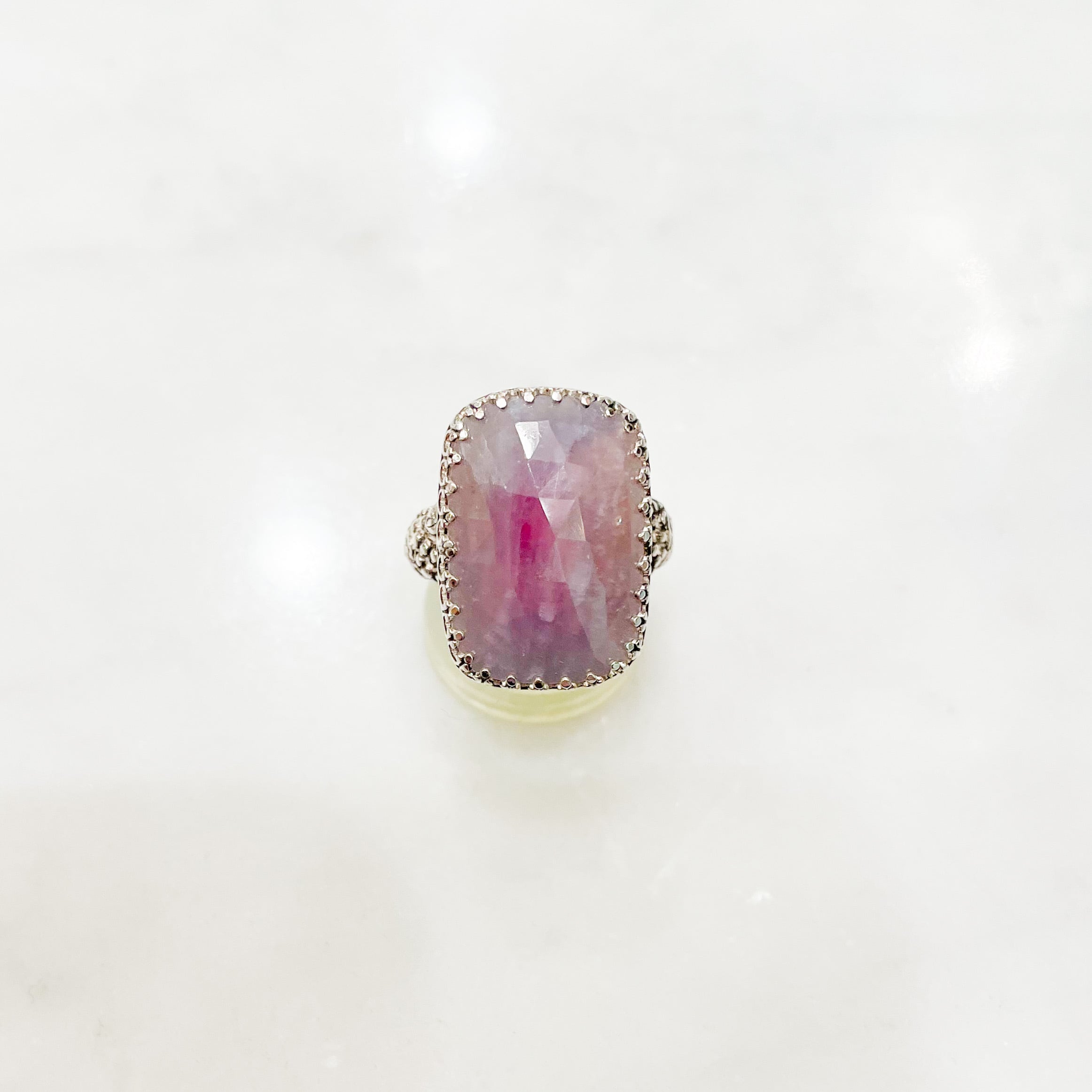 シルバーで王冠留めされたグレーパープルのサファイア(16.56ct)のリング