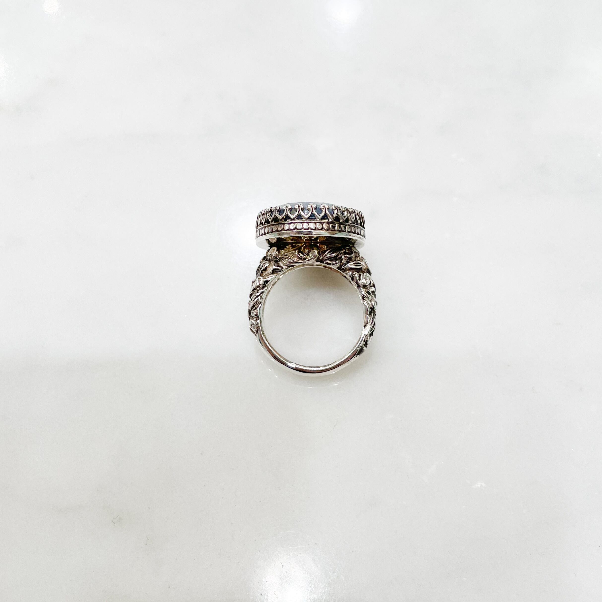 薔薇の模様が深掘りされたシルバー台、そしてティアラのような爪は時間が経つとアンティークなような風合いに変じていきます。