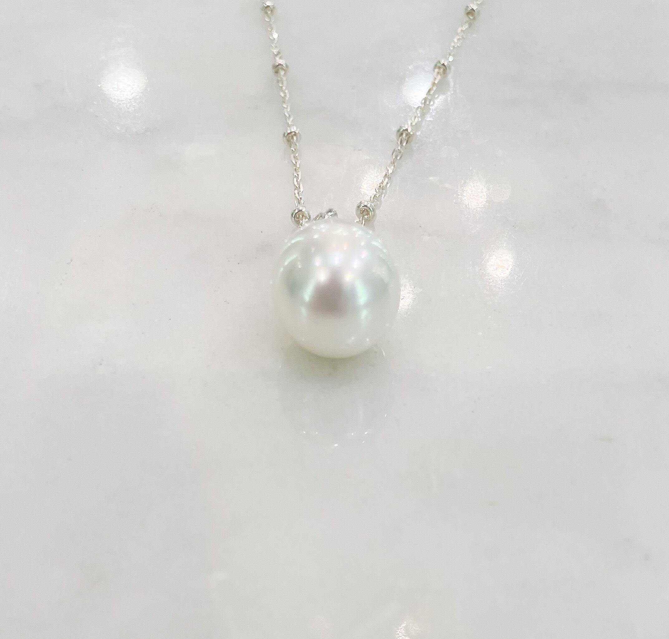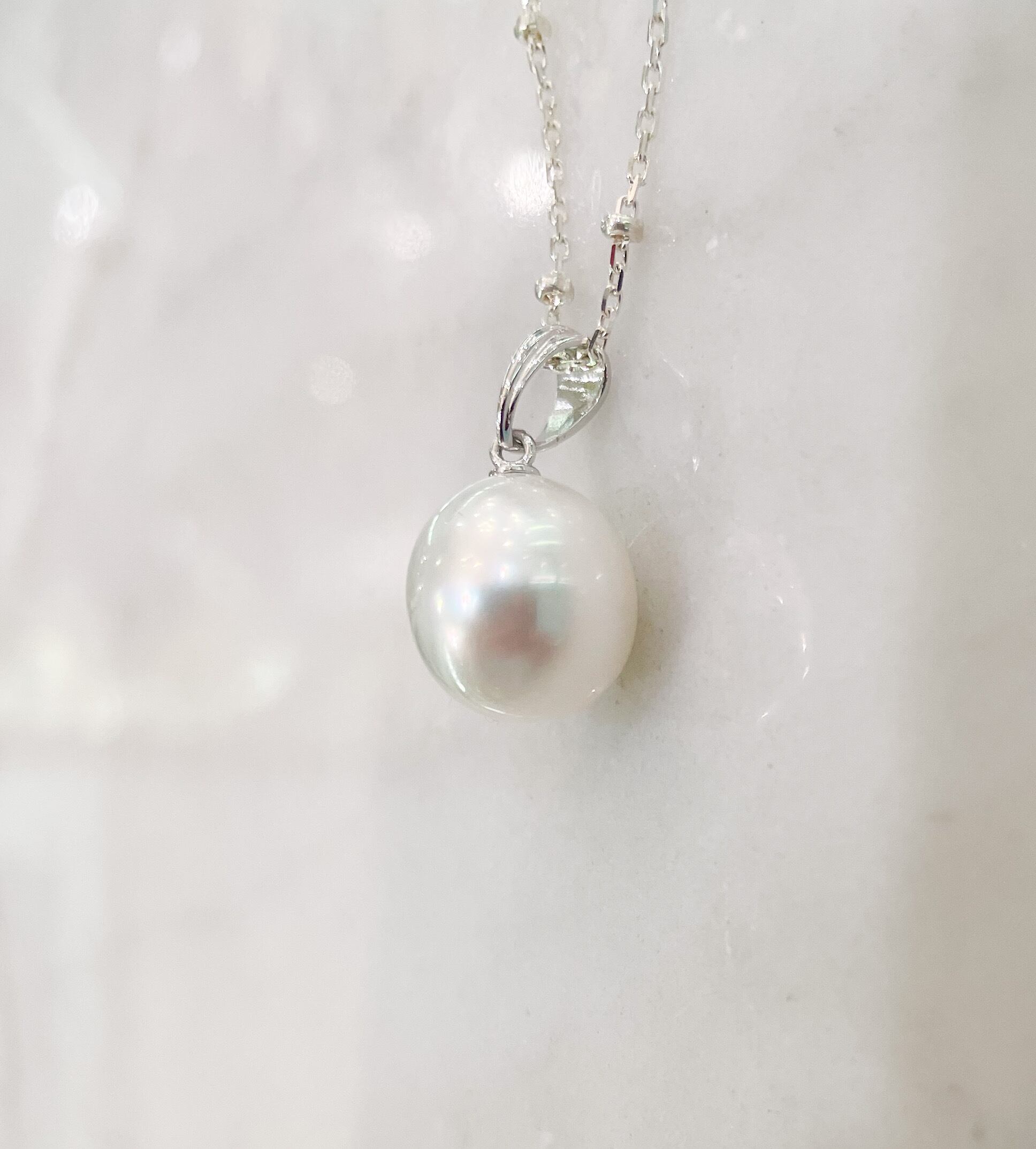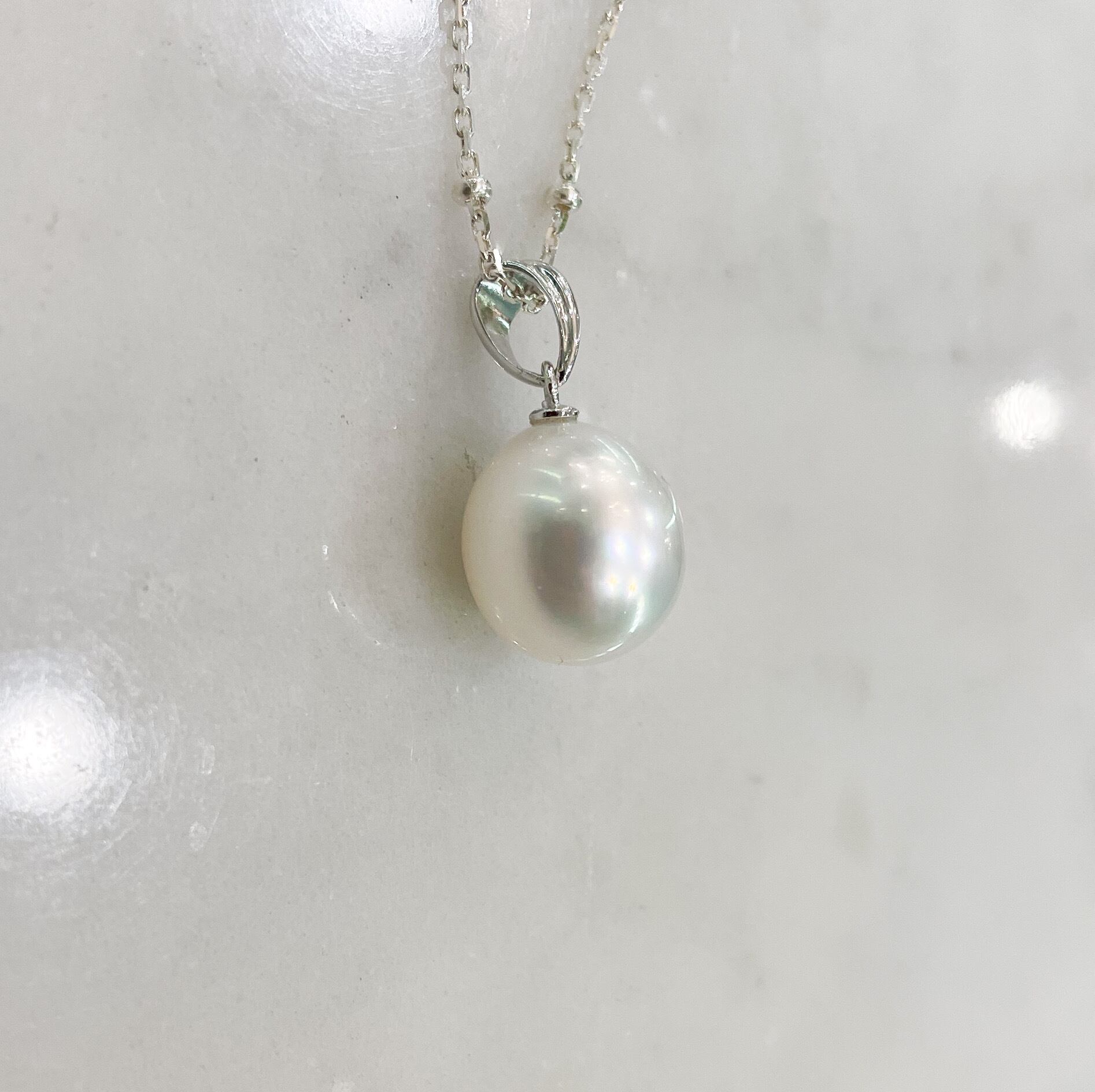 白い南洋真珠のシンプルペンダント(シルバー金具)チェーン別