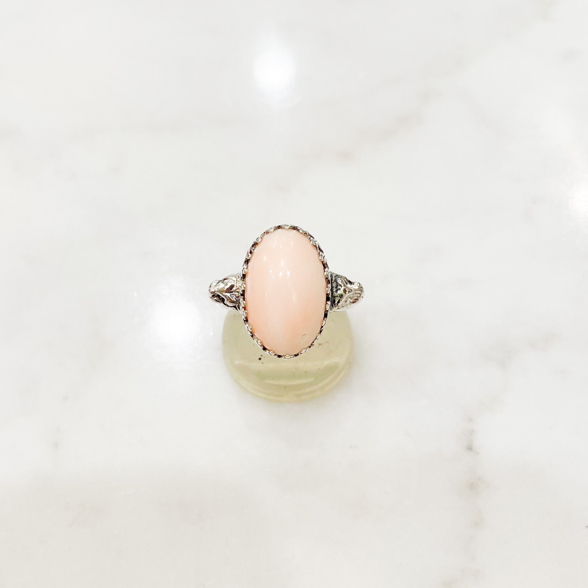 なめらかでツヤのある桃色珊瑚の質感はとてもやわらか。