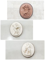 白のカメオは弓を引くキューピッドと犬と遊ぶキューピッドの2種類をご用意。
