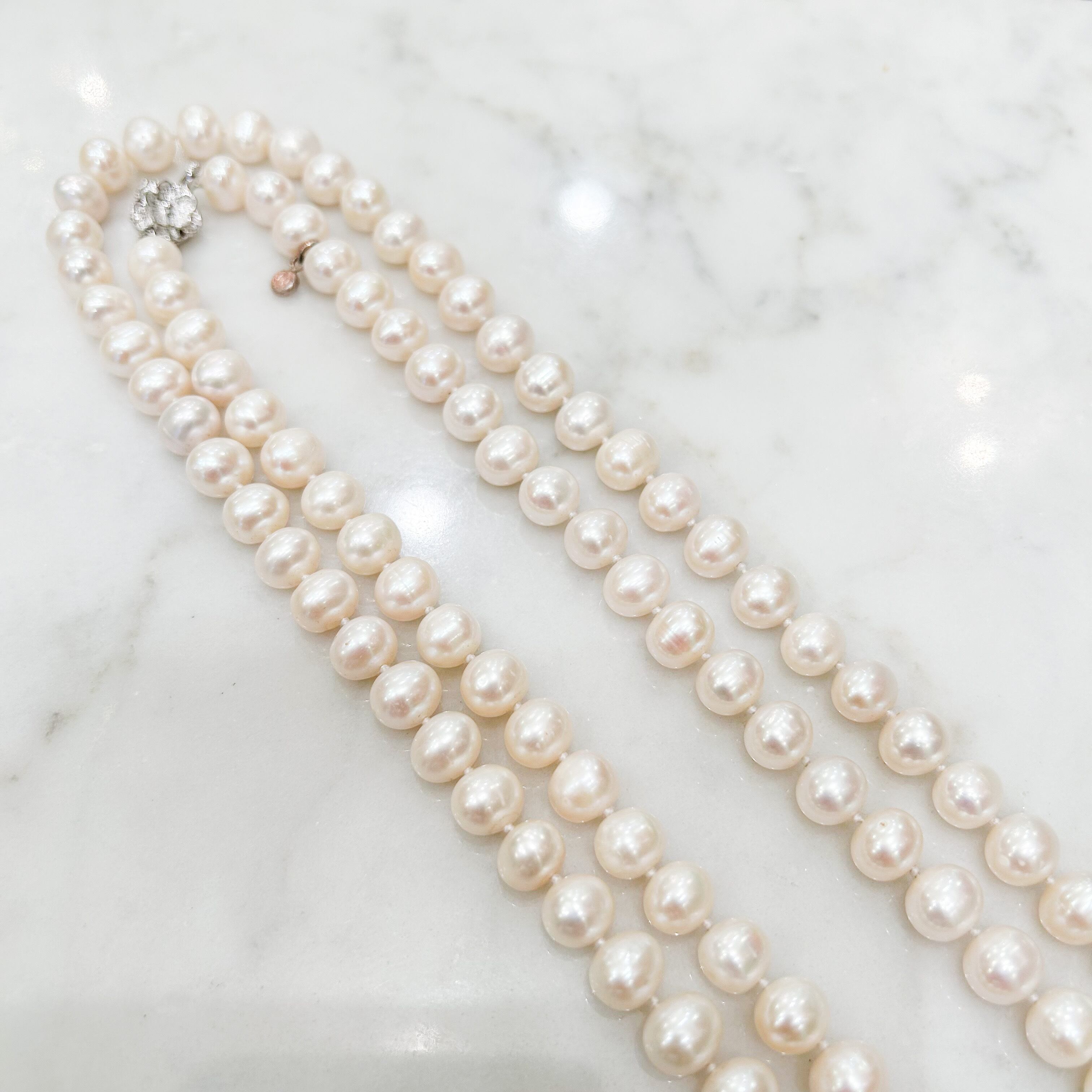 真珠と真珠の間には全て結び目を入れているので、とても滑らかにつけることのができます。