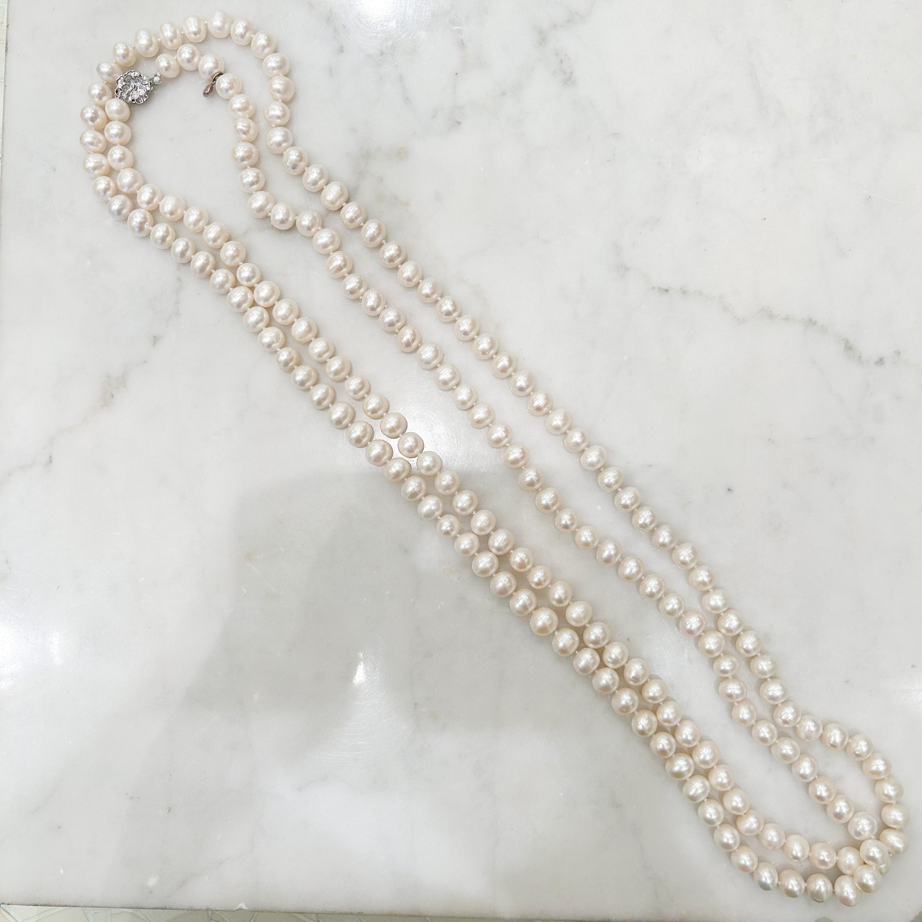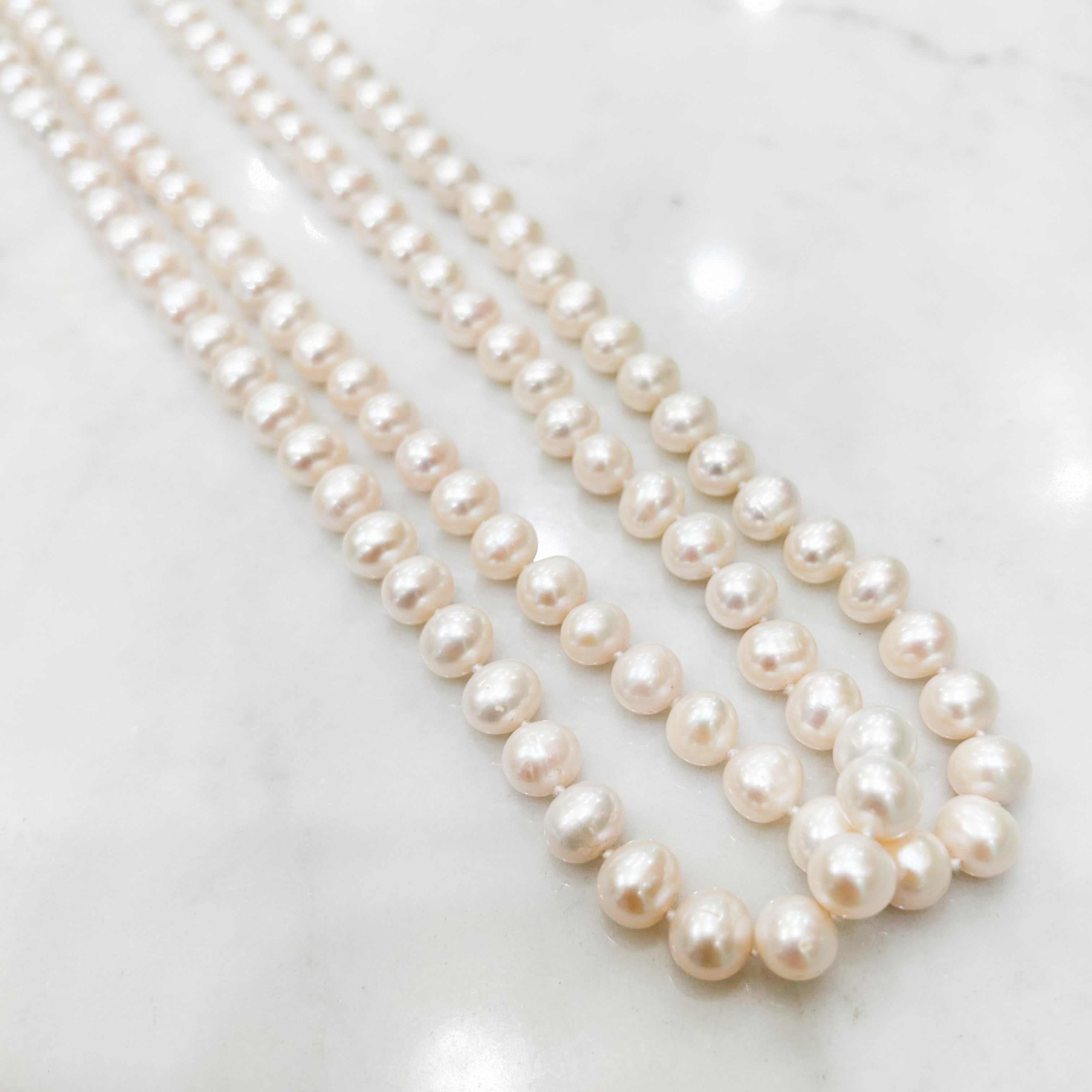 シンプルでクラシカル感のあるバロックパールロングネックレスは、アレンジ次第で色々なお洒落を彩ってくれます。