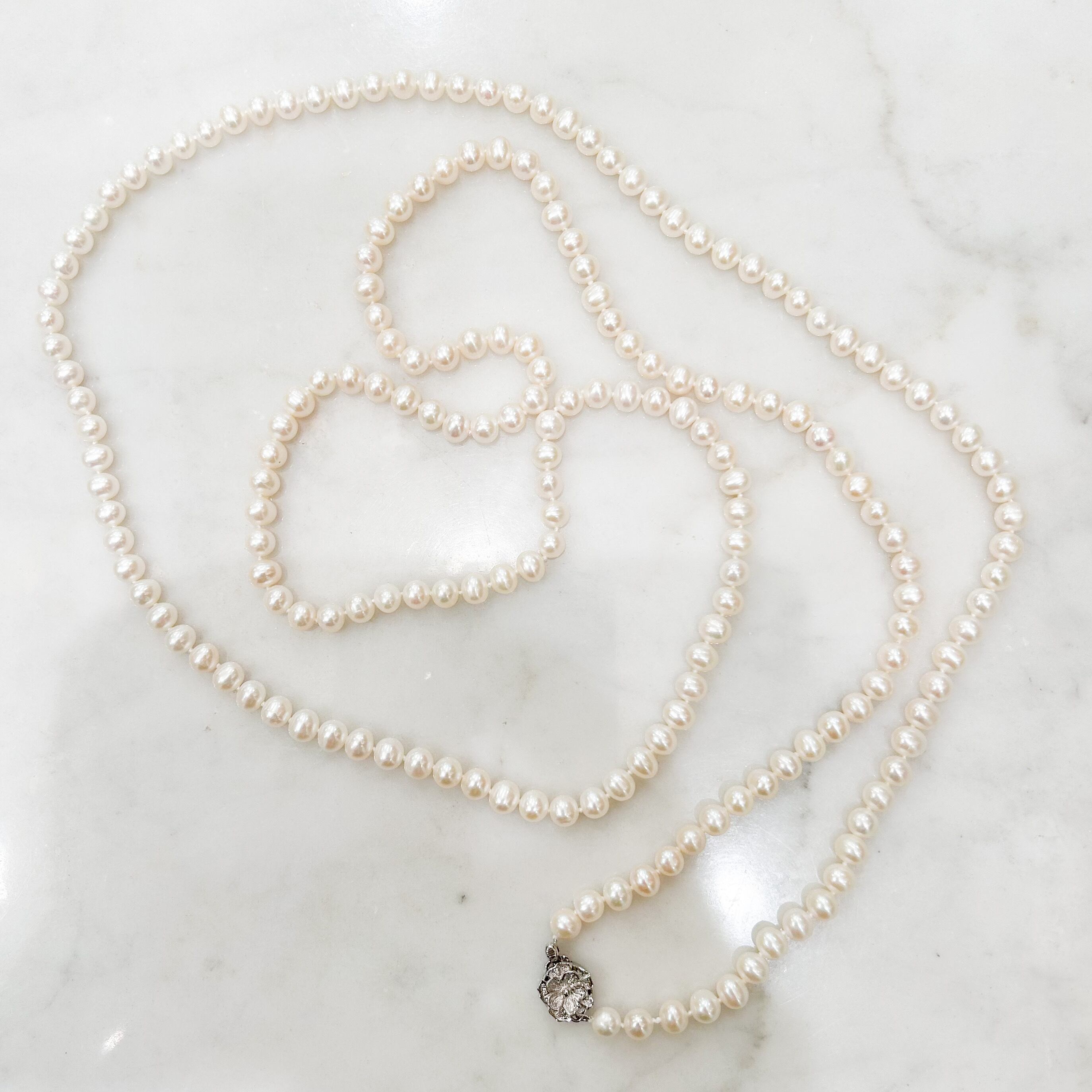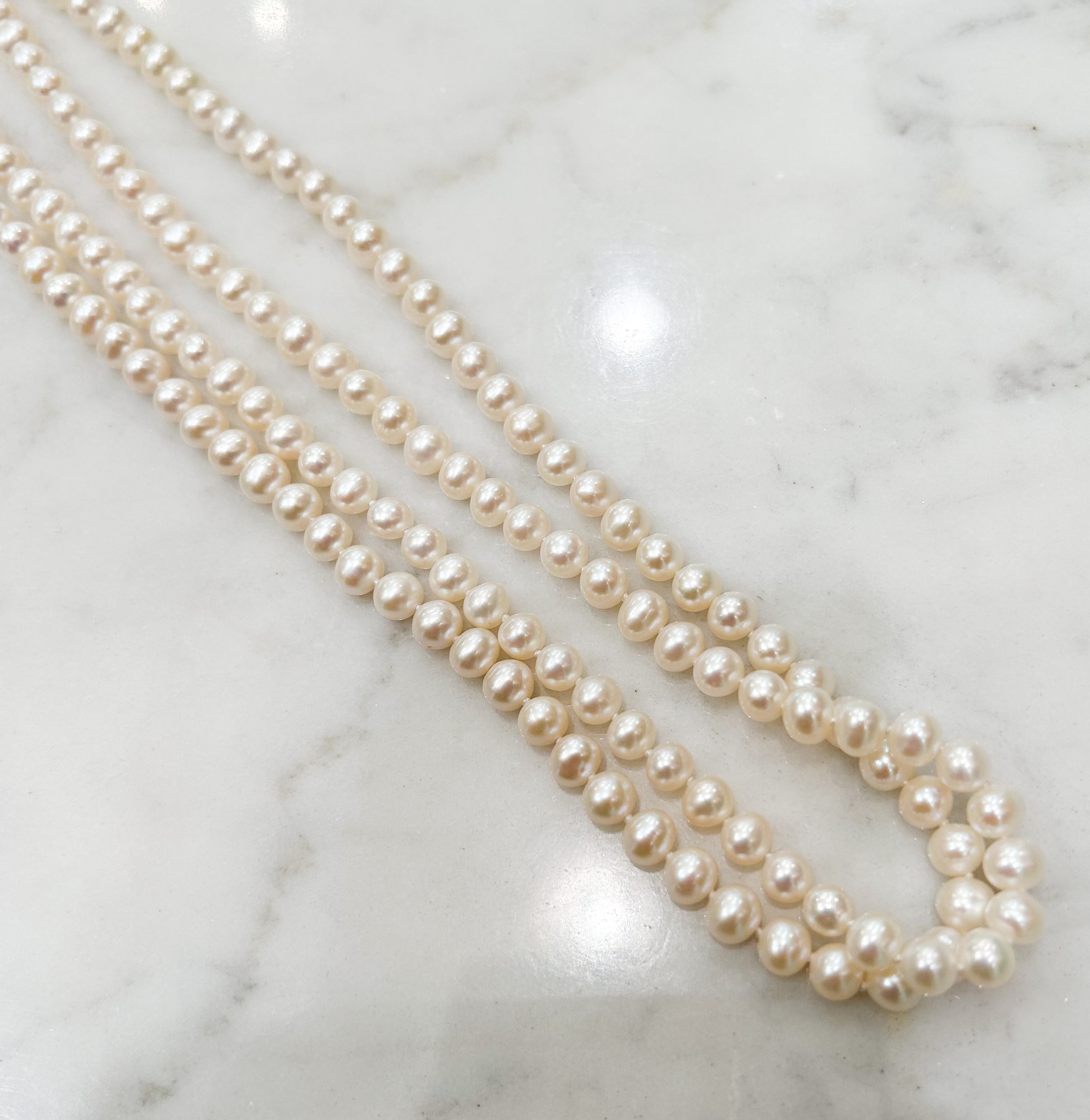 5.5〜6mmの使いやすい大きさの真珠を120cmの長さに繋いだロングネックレスです。