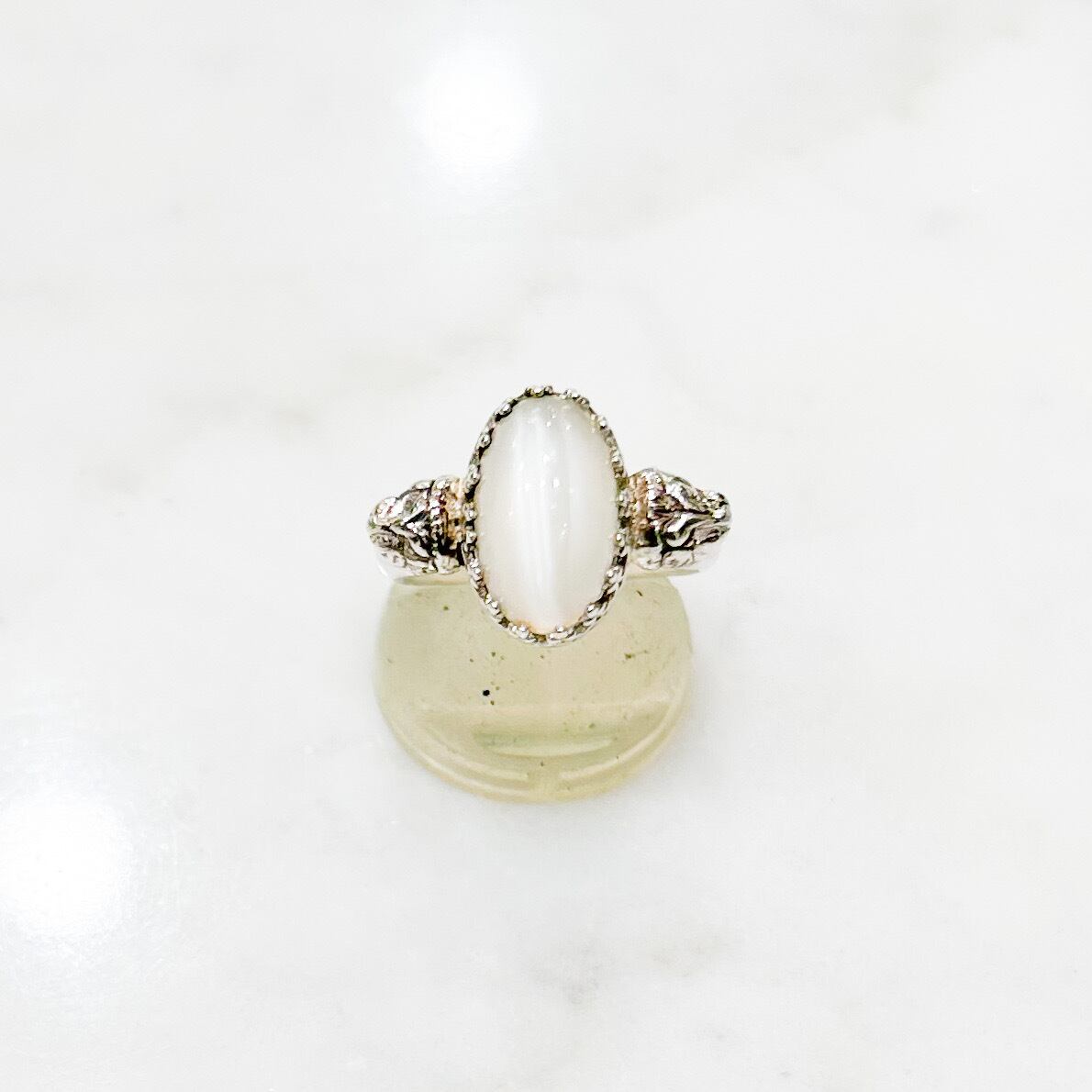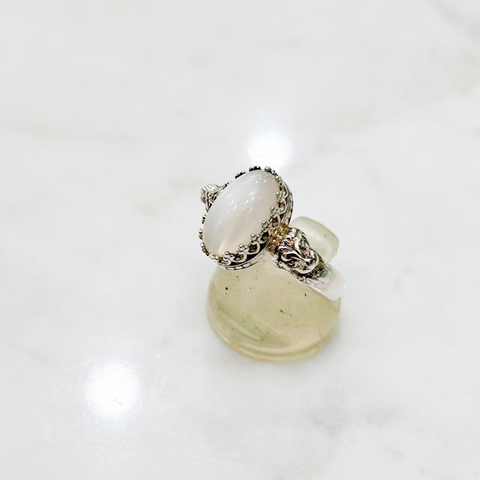 ムーンストーンの神秘的な雰囲気と、時代を超えてきたかのような、燻銀のライオンリングとの雰囲気がとても良くマッチしています。