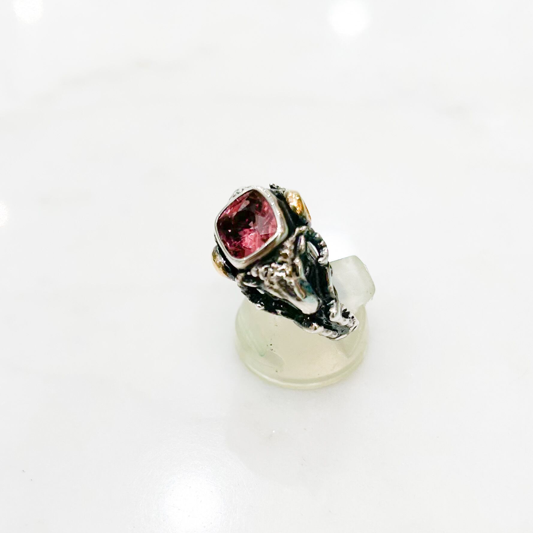 ピンクスピネルの銀の山羊リング(22金の刻印付き)