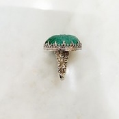 蛍石、フローライトはとてもカラフルな天然石で、青や紫などのものもあるのですが、この指輪に使われているのは美しい緑色。