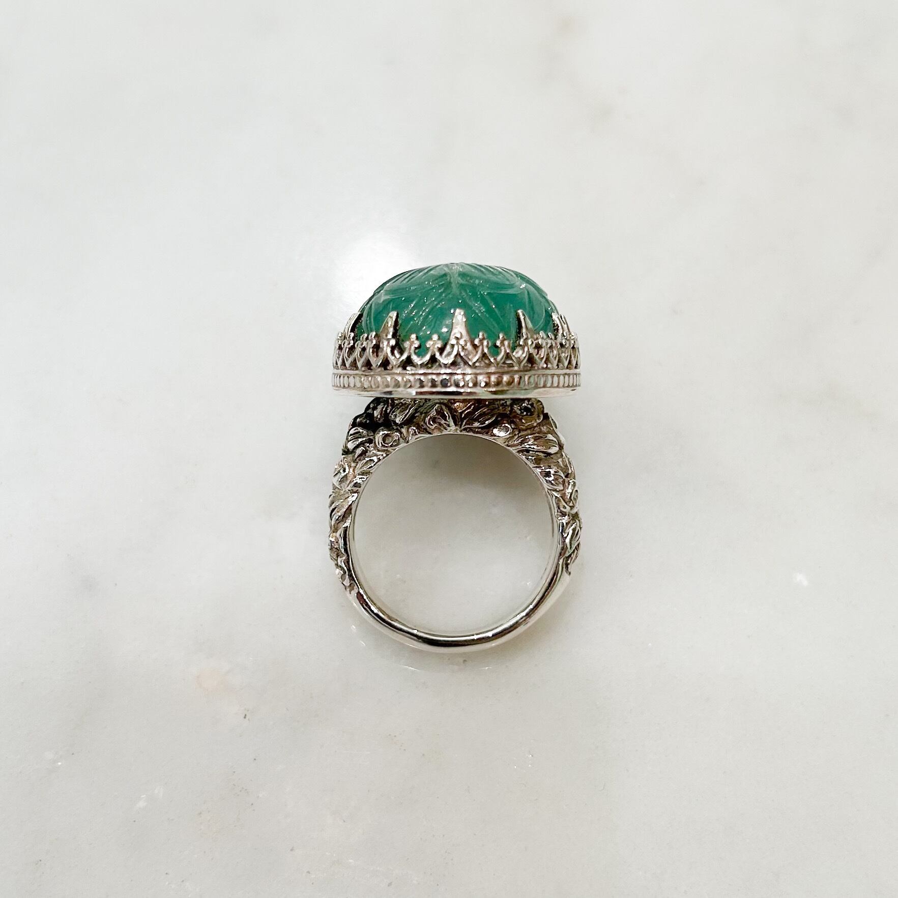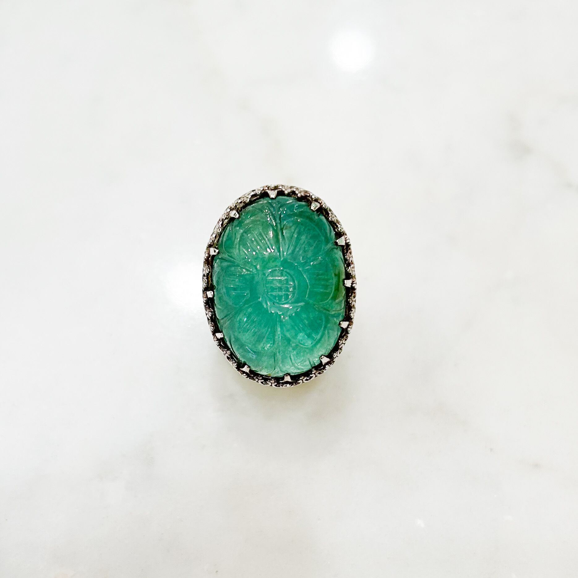 花模様の彫りの蛍石(フローライト)のシルバーリング