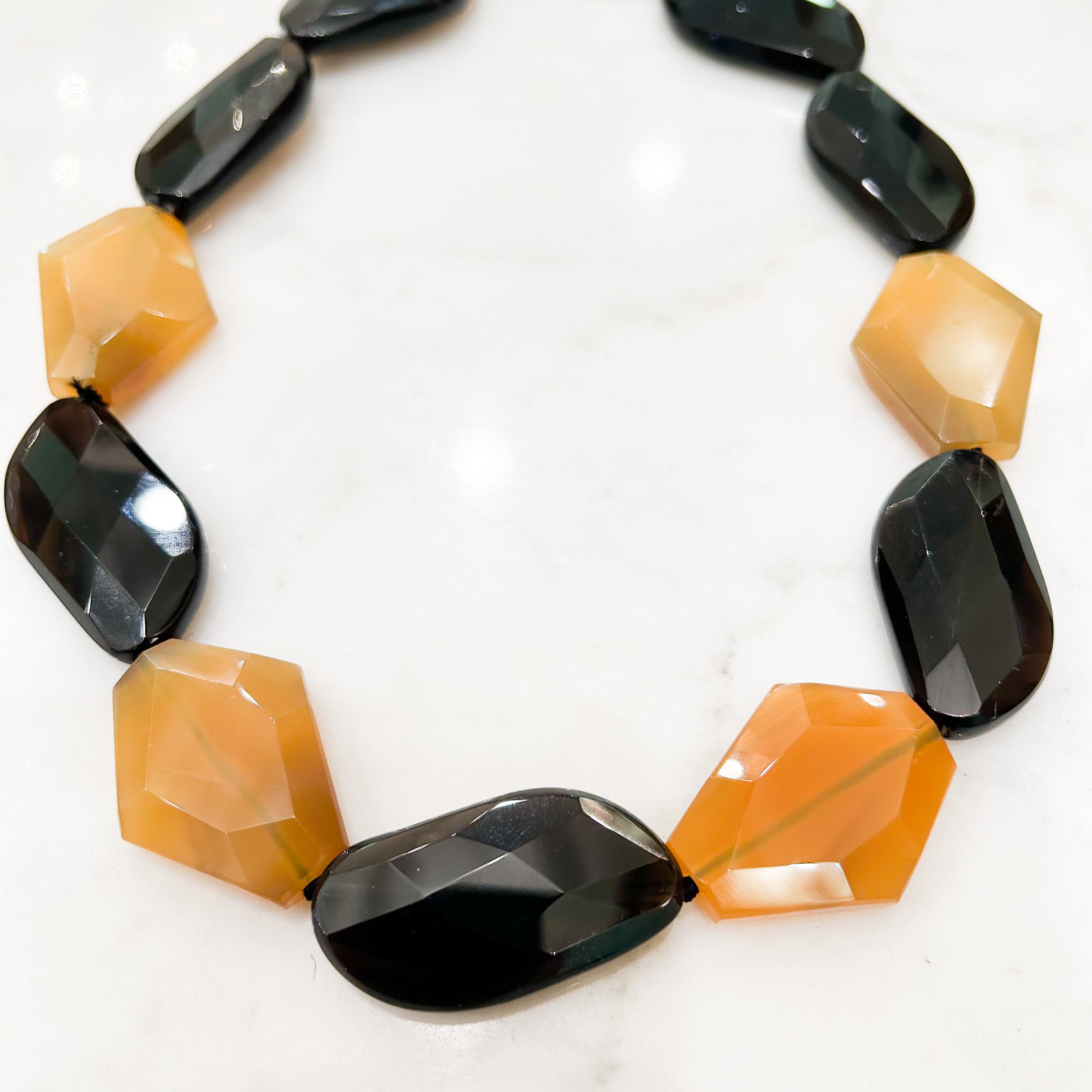 スモーキークォーツの透明感のある黒に優しいトーンの瑪瑙のキャメル色。