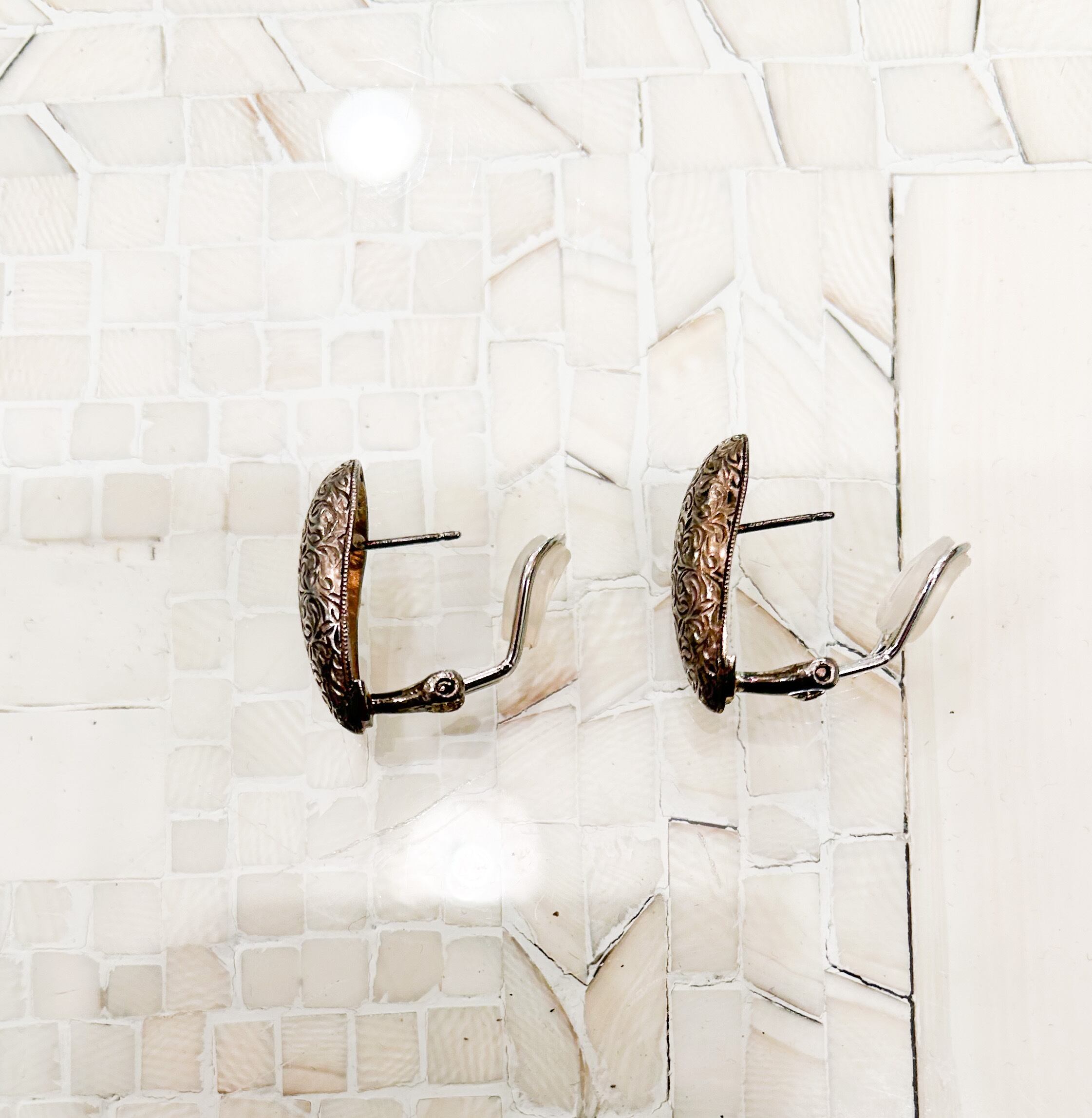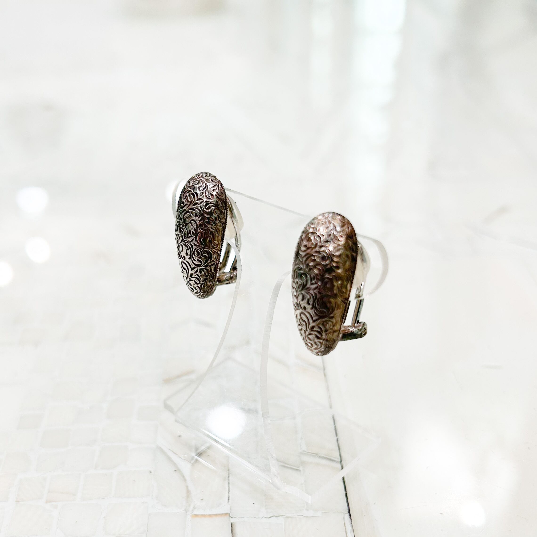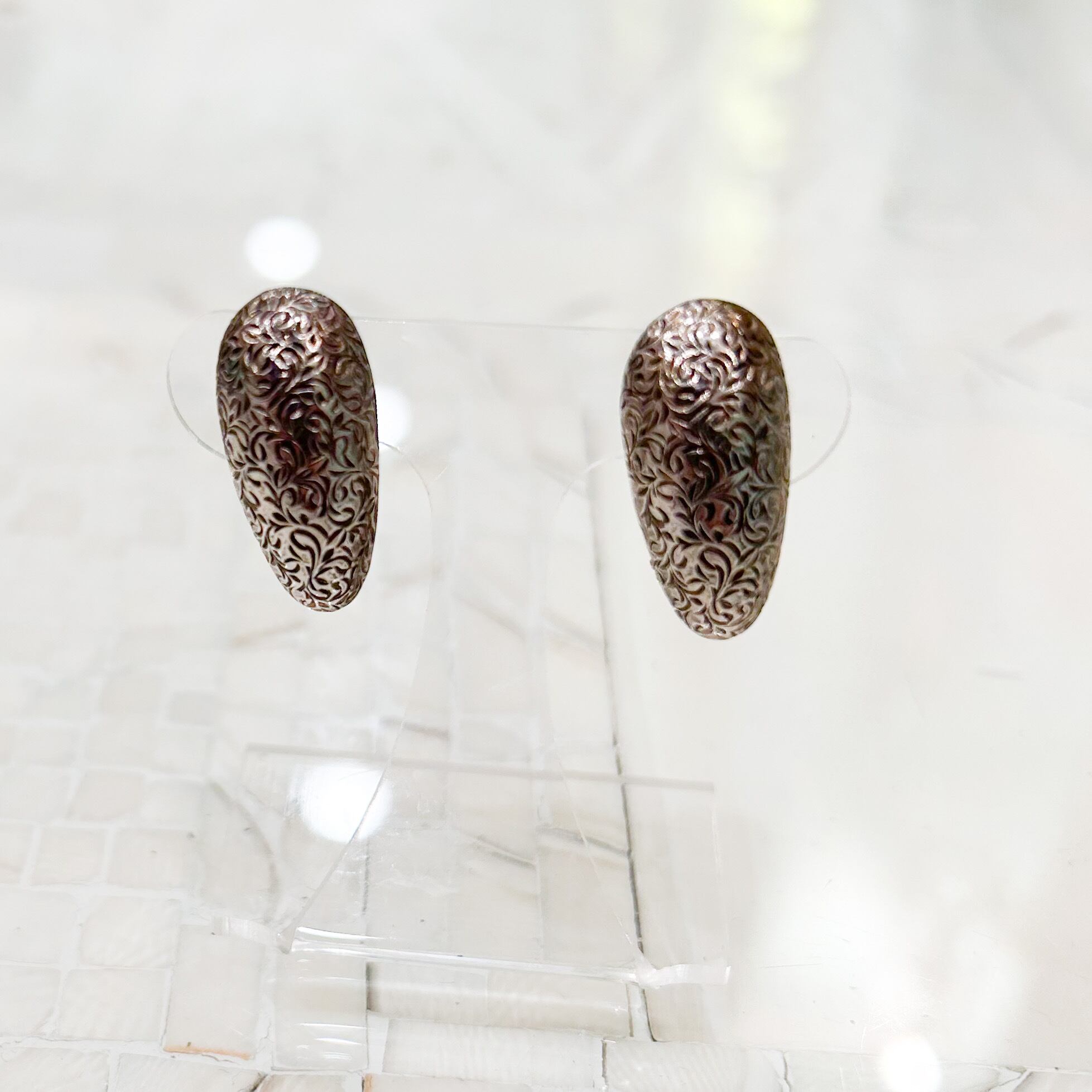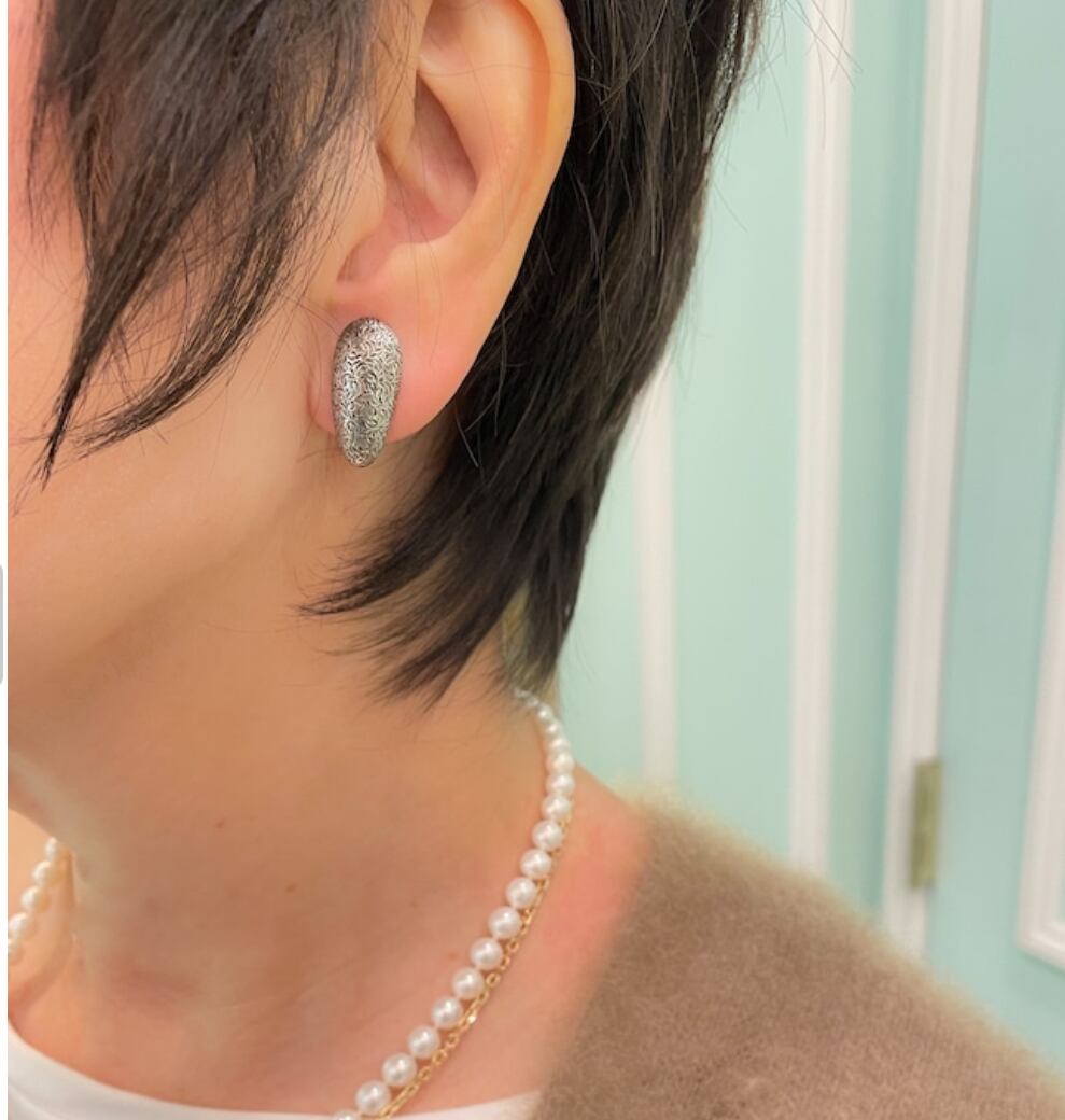 こちらのイヤリングは全体を細かな彫りで覆われています。