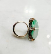 玉(ギョク)とダイヤモンドの鷹の爪留めシルバー台リング