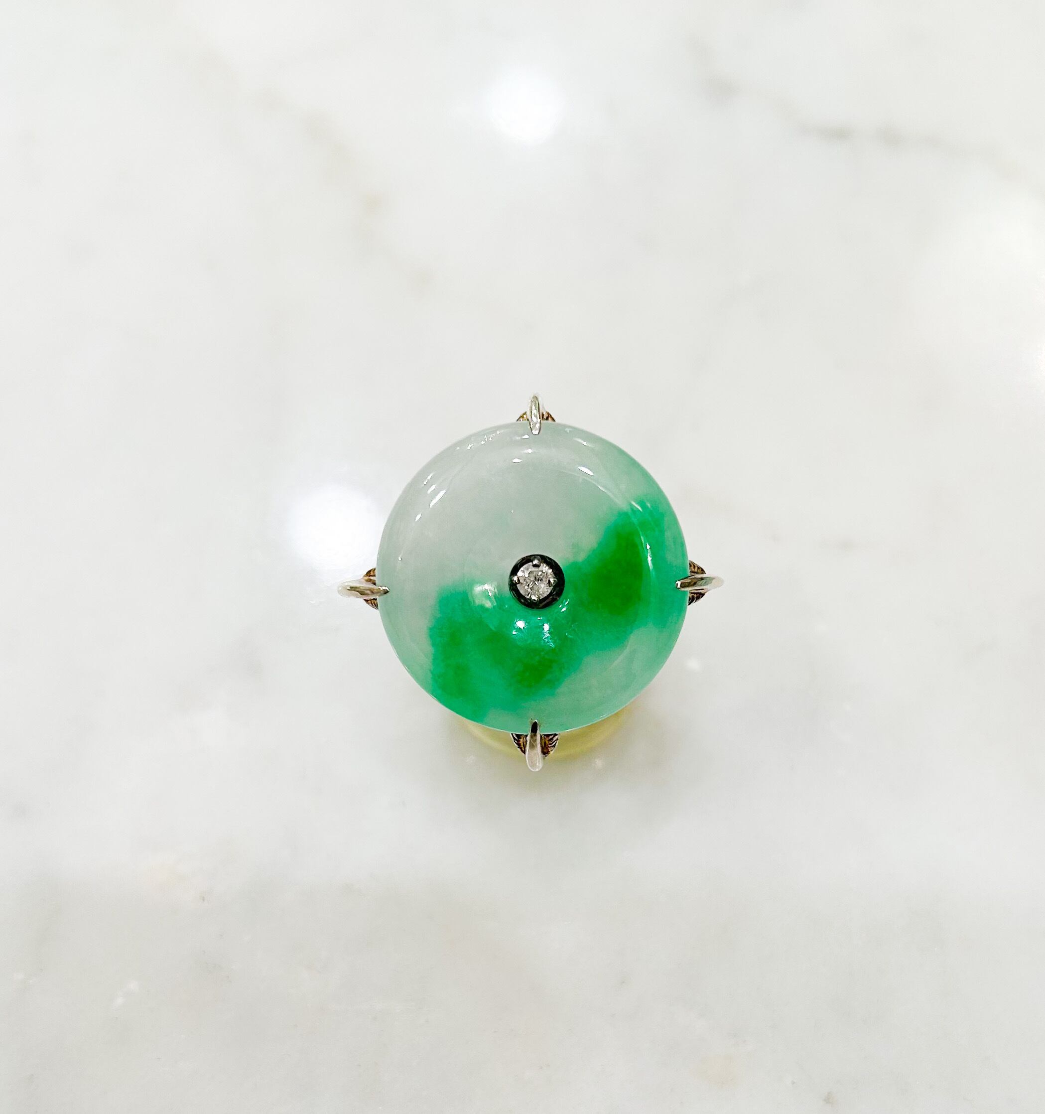 白と緑色の混じり合う玉(ギョク)は静かな美しさな石で、とてもオリエンタルな雰囲気があります。