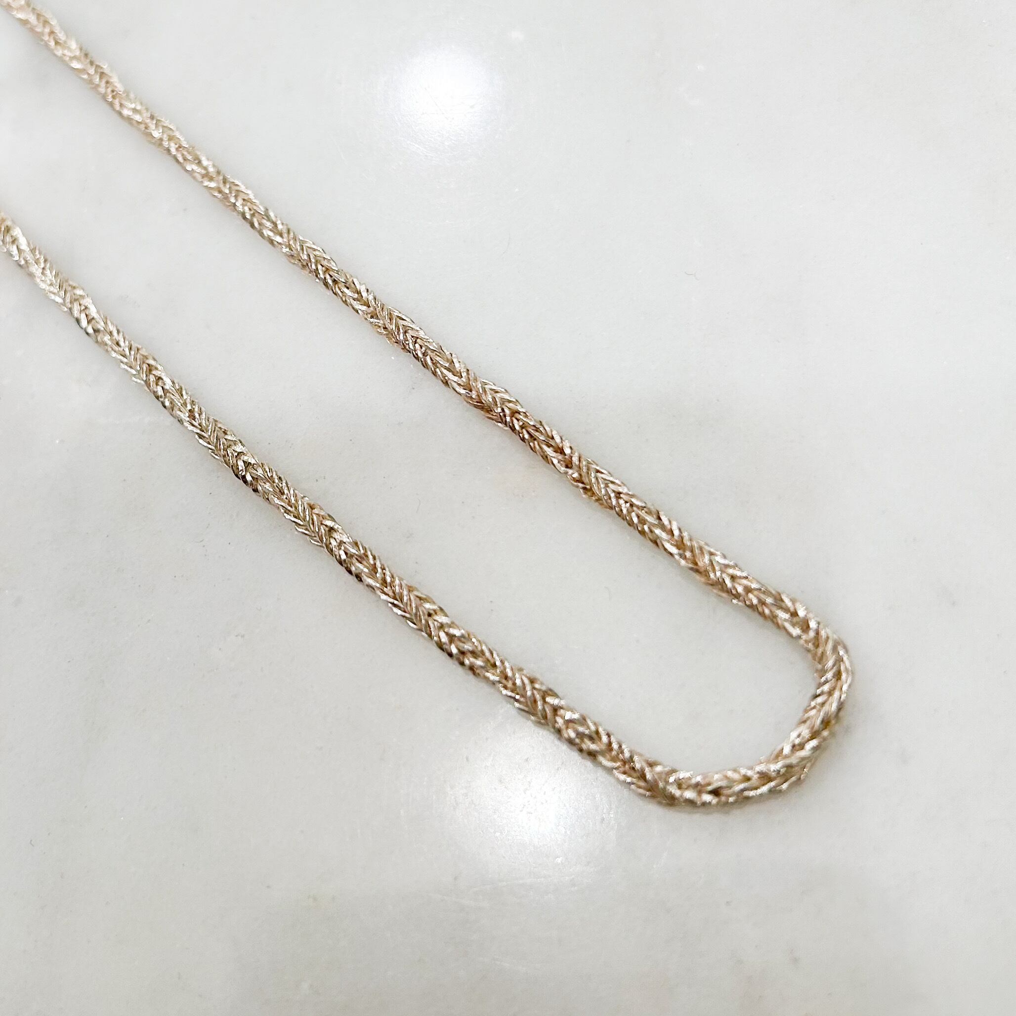 細かく編み込んだ三つ編みを二つほど束ねて捻ったような、味のある作りです。