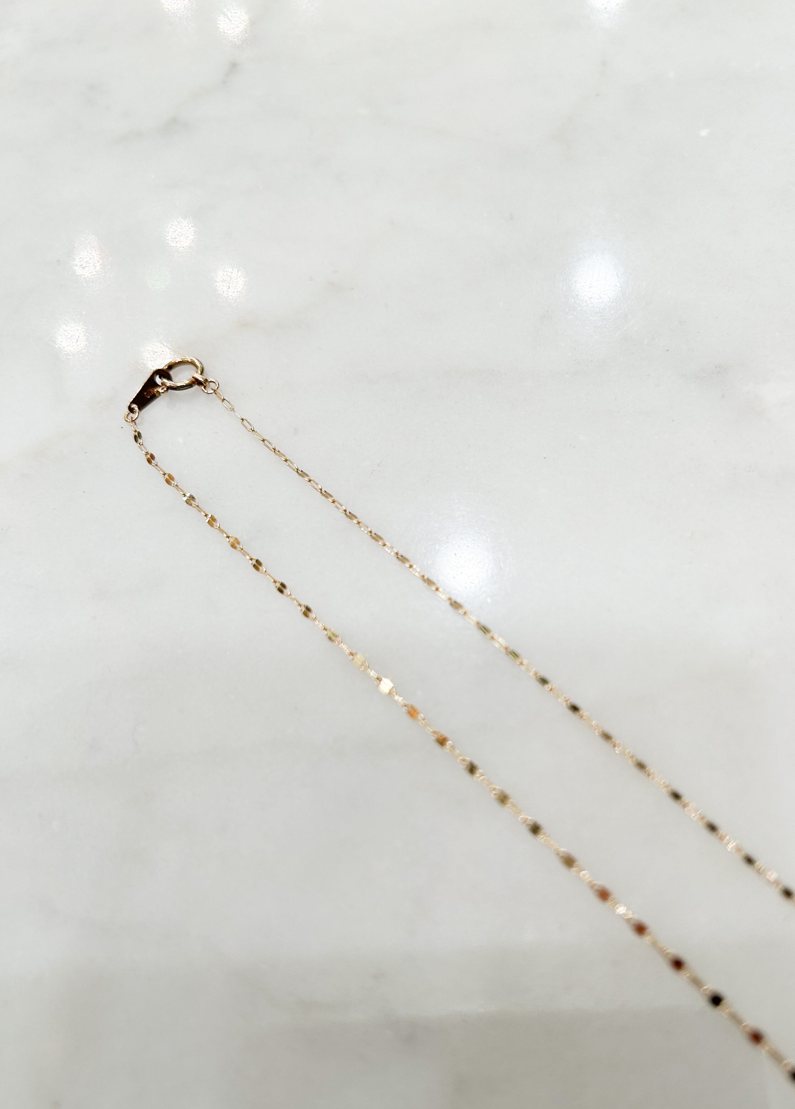 華奢で、キラキラと輝くチェーンなので、大きいチャームよりも小さめのものや、輝きの優しいチャームと共にお使いください。