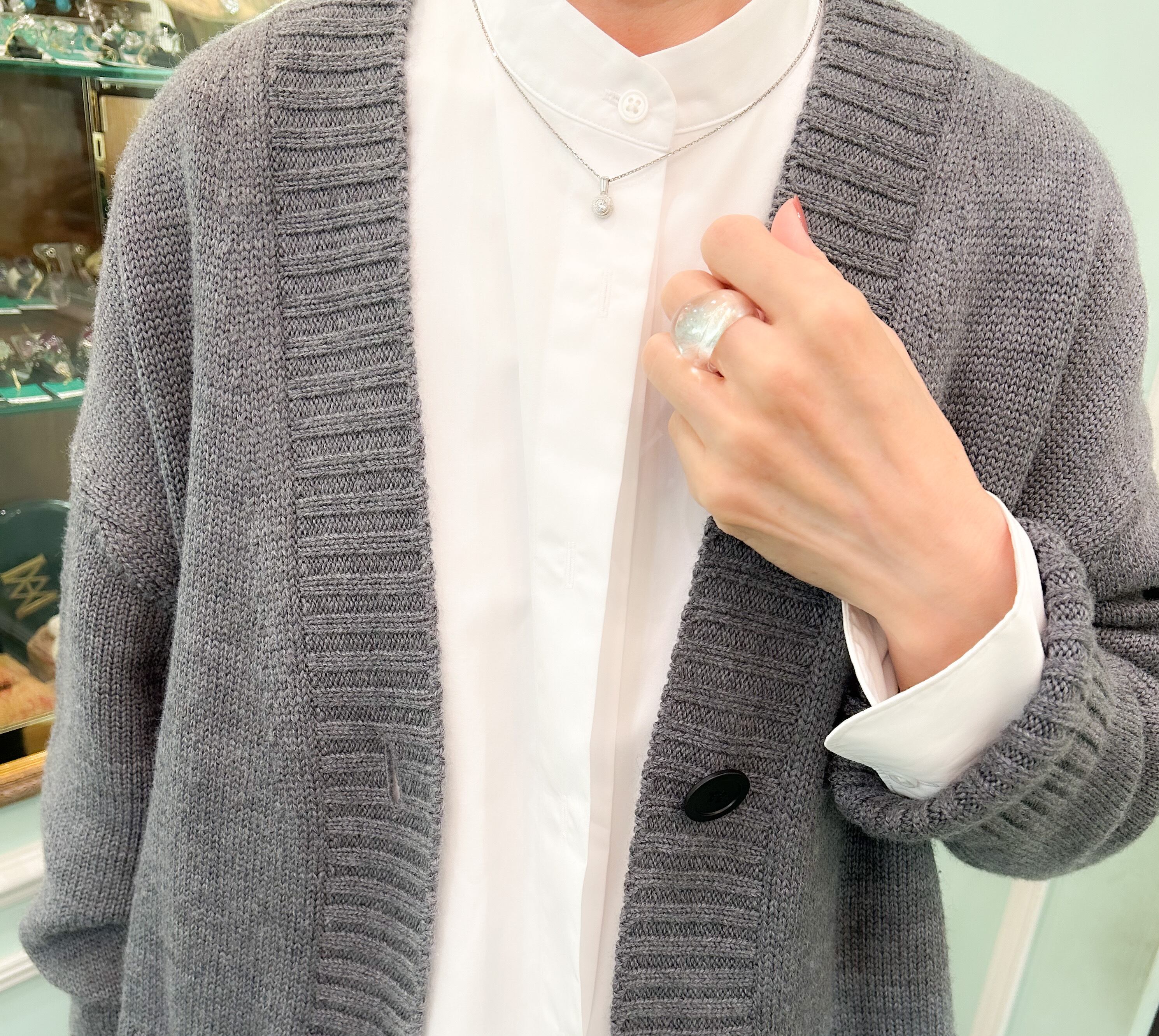 透明なので本当に合わない色はないと言っても良いリングです。