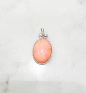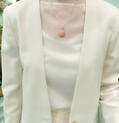 ストンとした縦楕円の形は胸元に落ち着きやすく、優しいトーンのピンクはお洒落をフワッと明るくしてくれます。