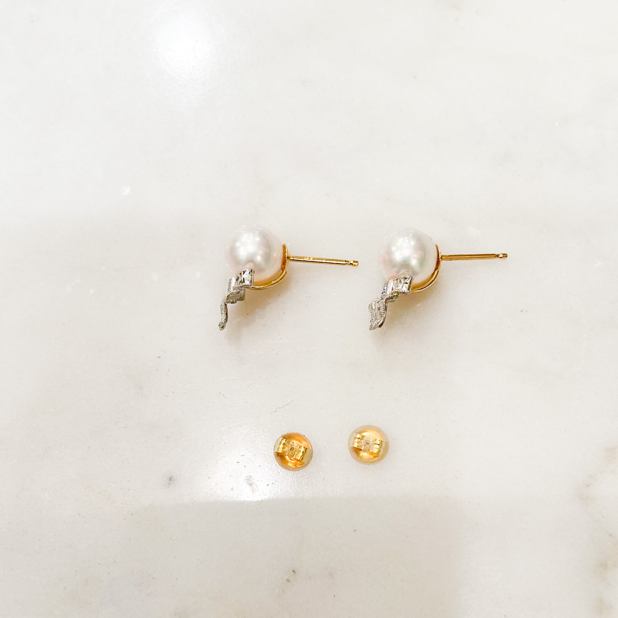 和珠の下にプラチナとダイヤモンドのリボンのピアス(18金ポスト)