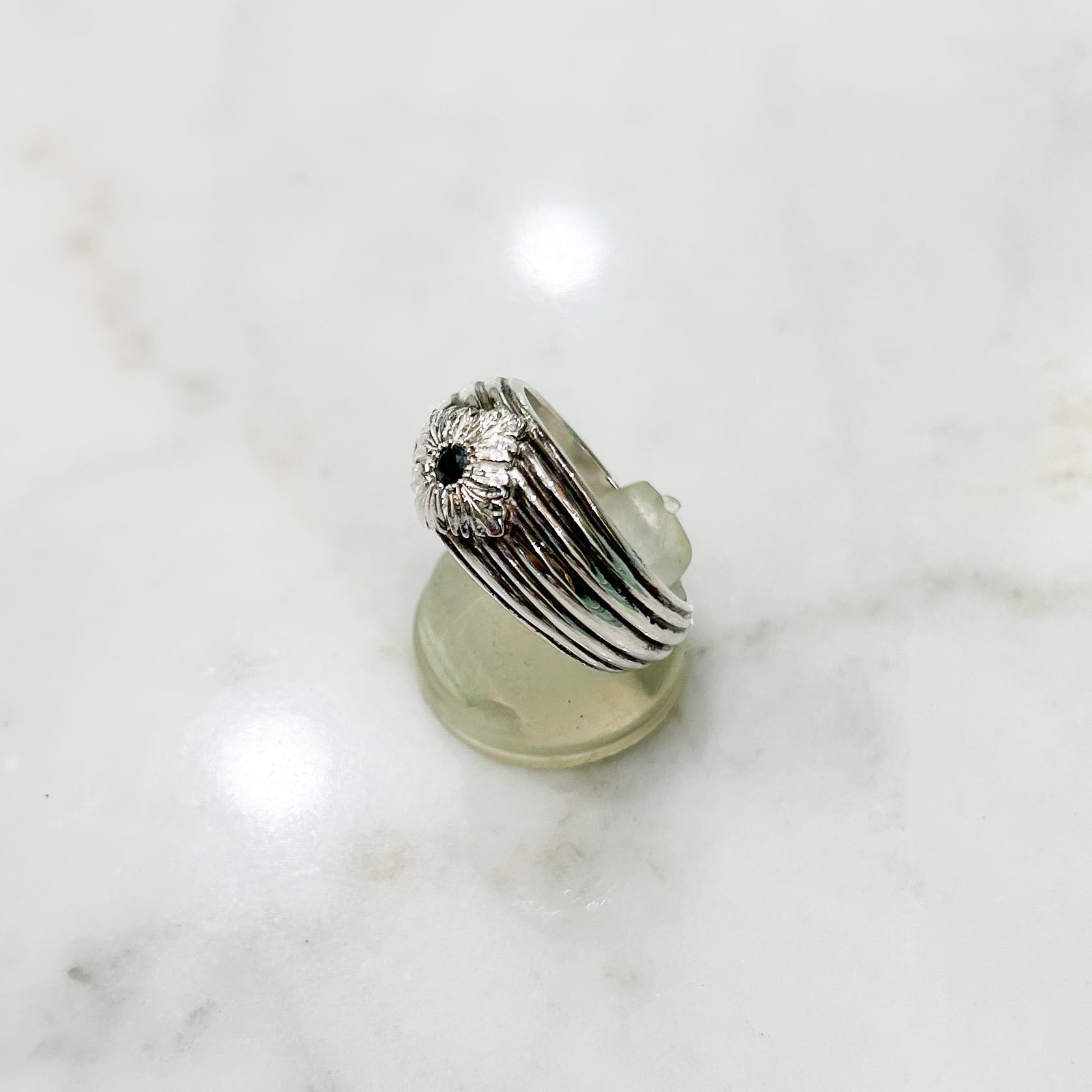 菱形のシルバーとブラックダイヤモンドの7山の月甲型シルバーリング