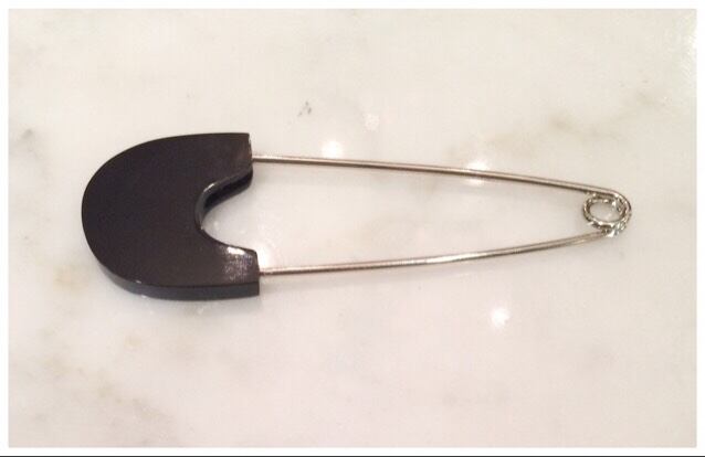 針をおさめる部分がべっ甲で作られた安全ピン型のブローチです。
